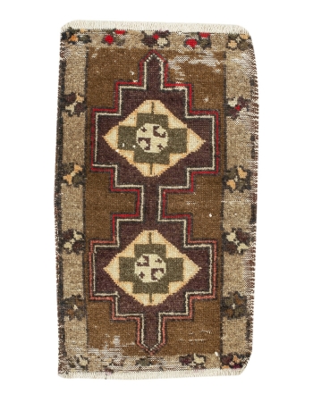 Vintage handknotted decorative mini rug from Konya region of Turkey. Approximately 45-55 years old. In very good condition. Rare find, Unique handmade item. Only 1 in stockFree shipping WorldwideUsual..