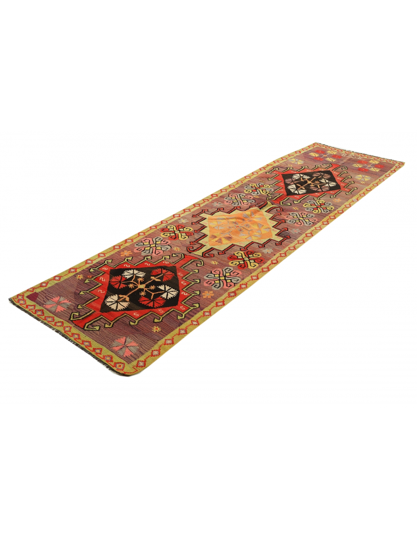Vintage Colorful Kilim Runner - 2`11" x 10`9"