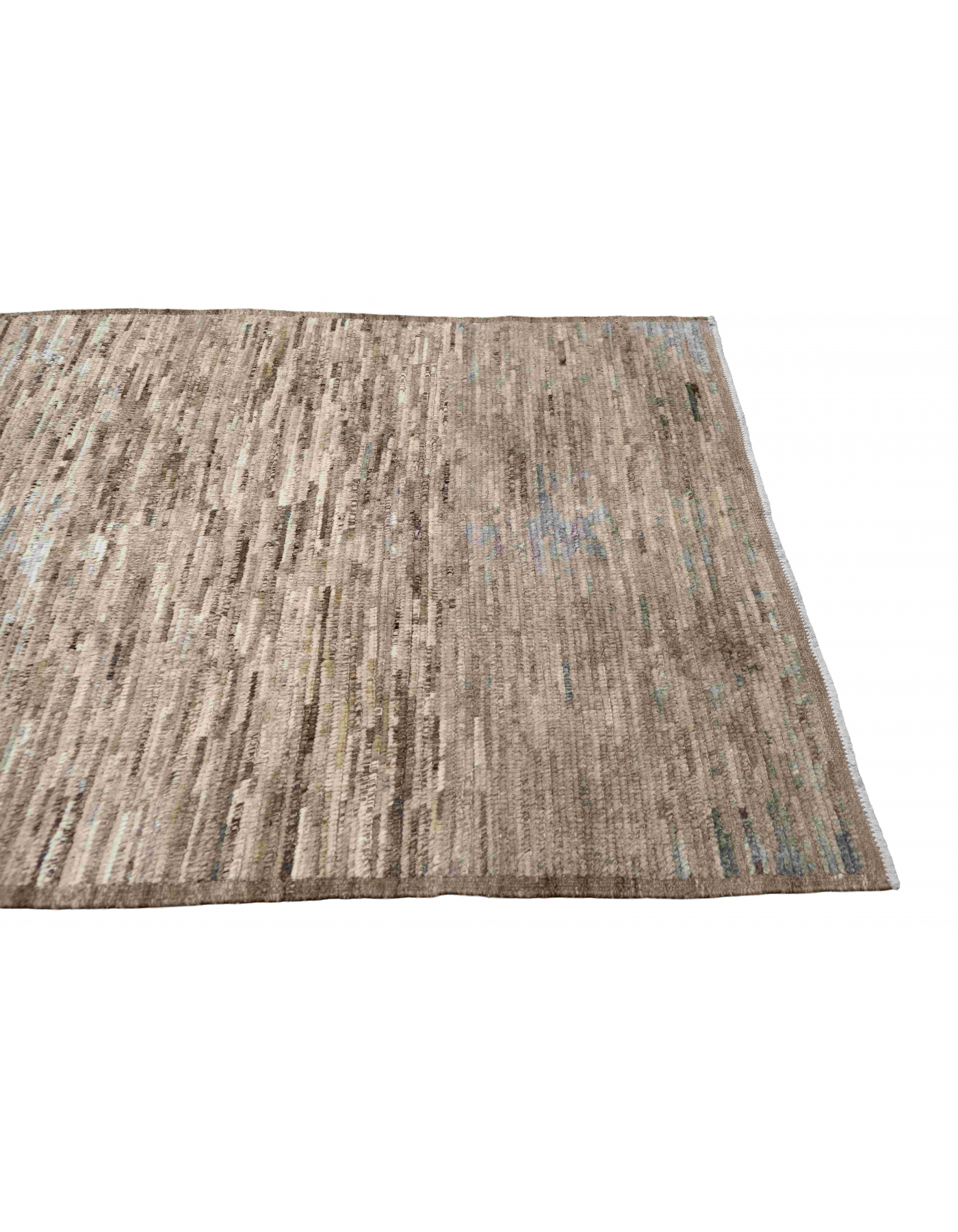 Taupe & Brown Hand Knotted Wool Rug - 4` 2″ x 8″