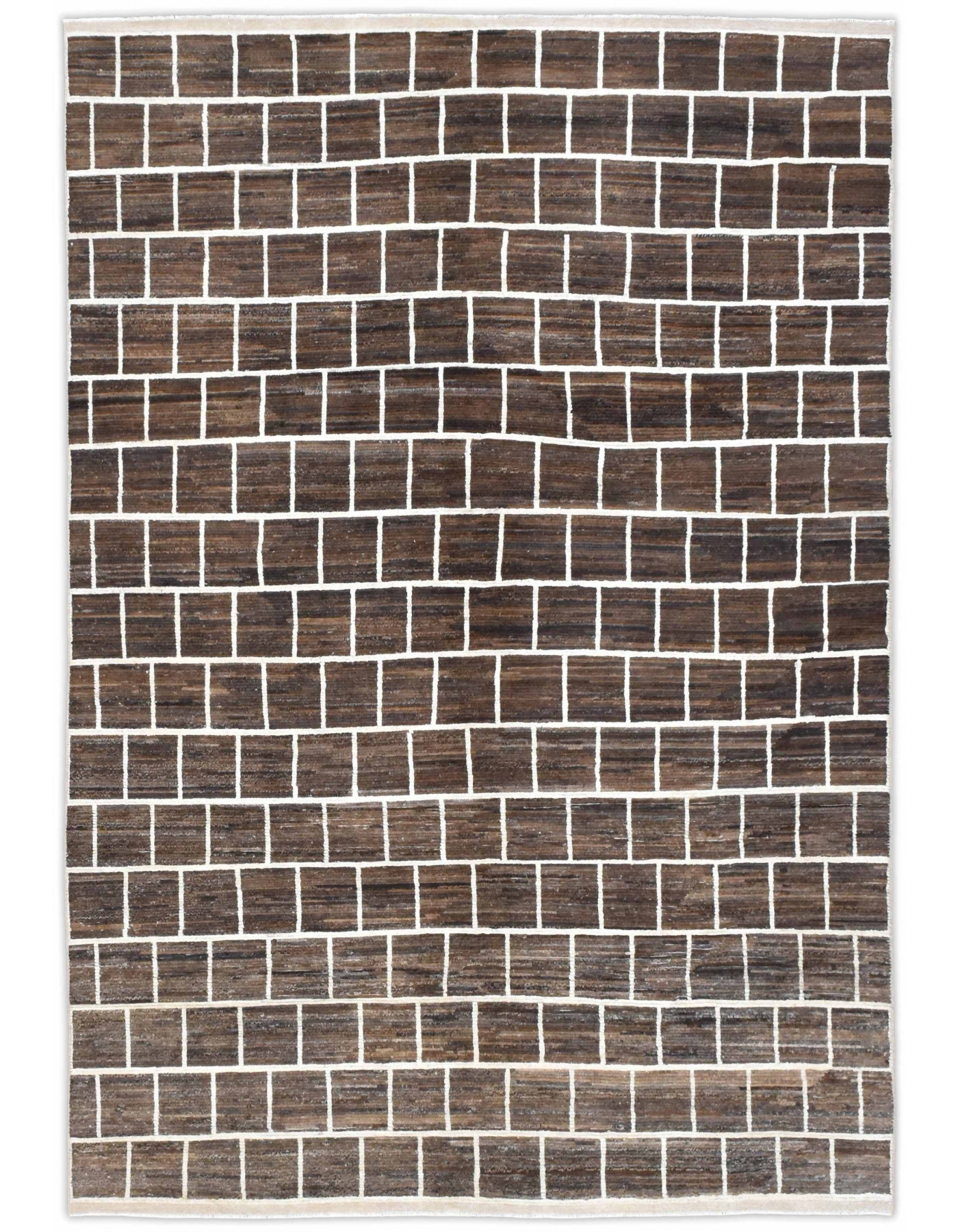Natural & Brown Hand Knotted Wool Rug - 8` x 11` 8″