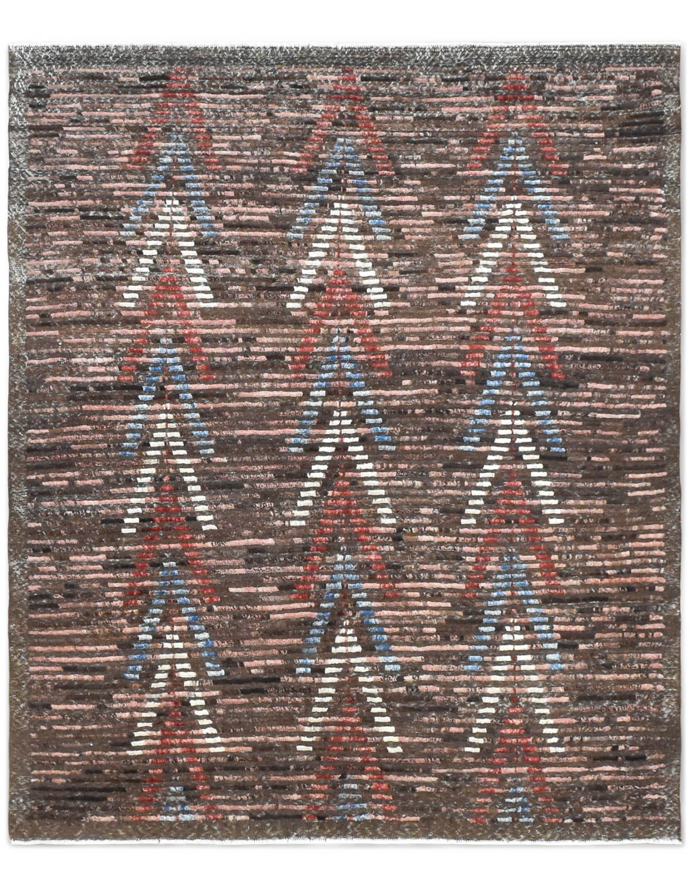 Blue & Brown Modern Wool Rug - 5` 9″ x 6` 8″