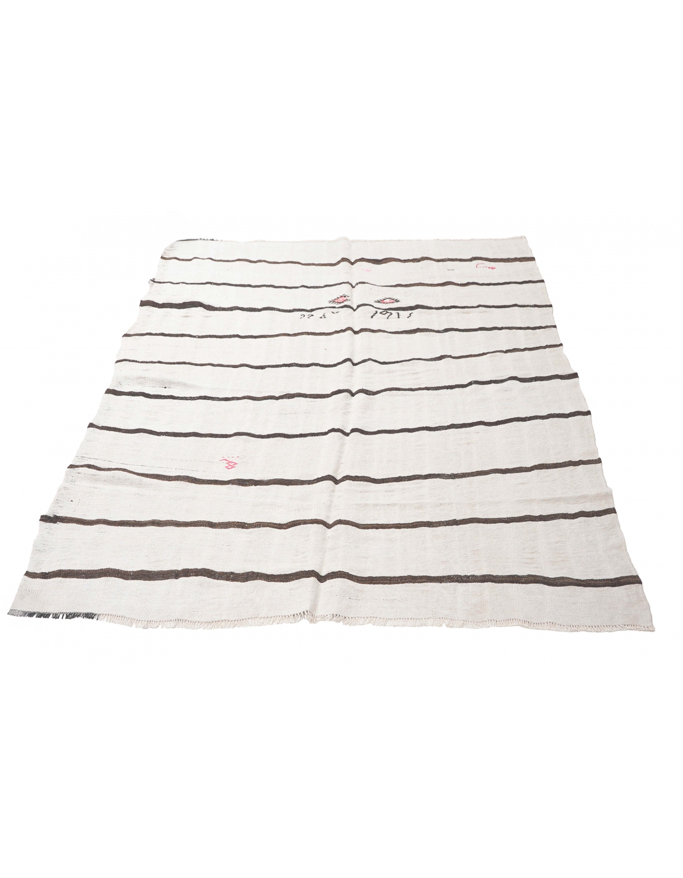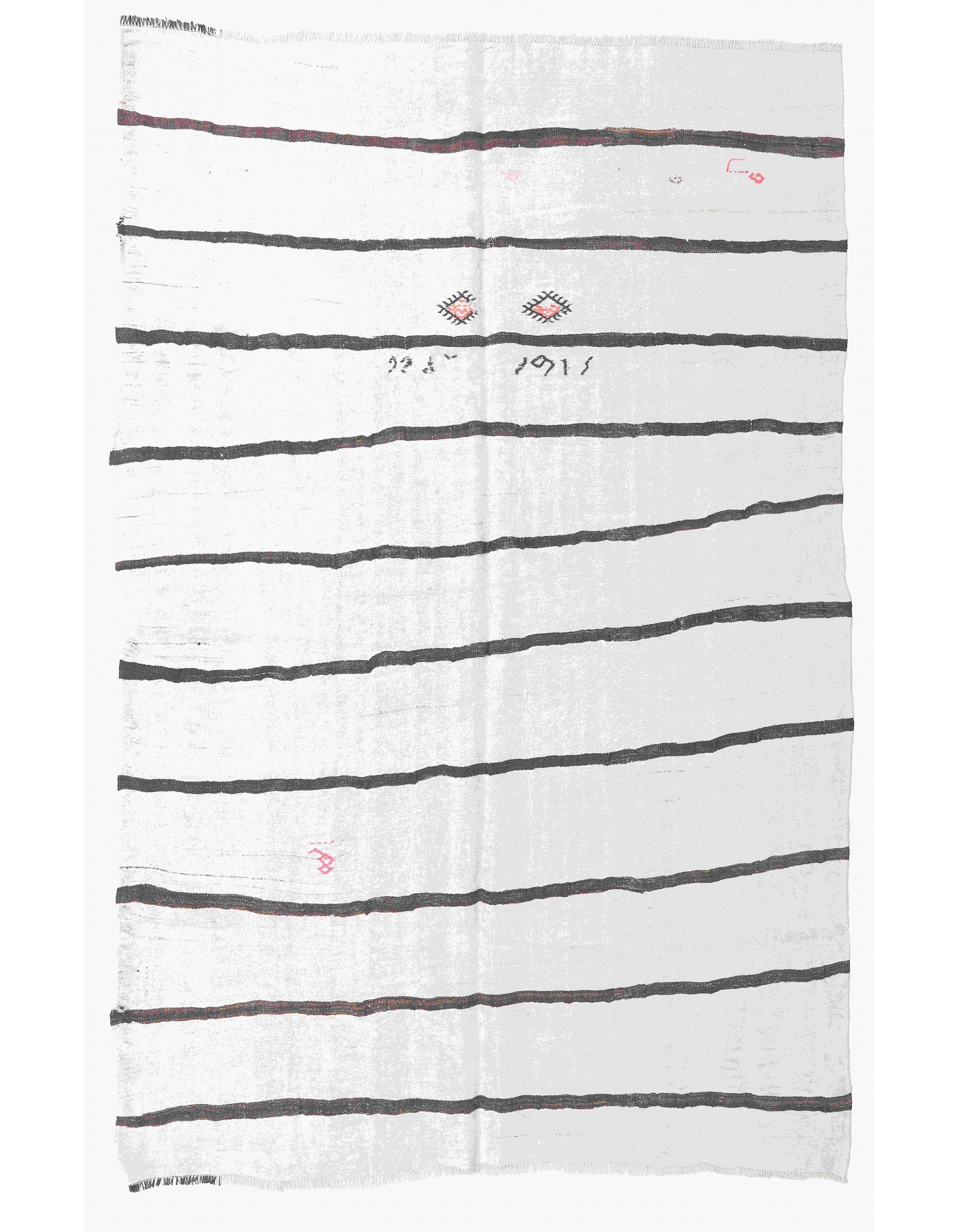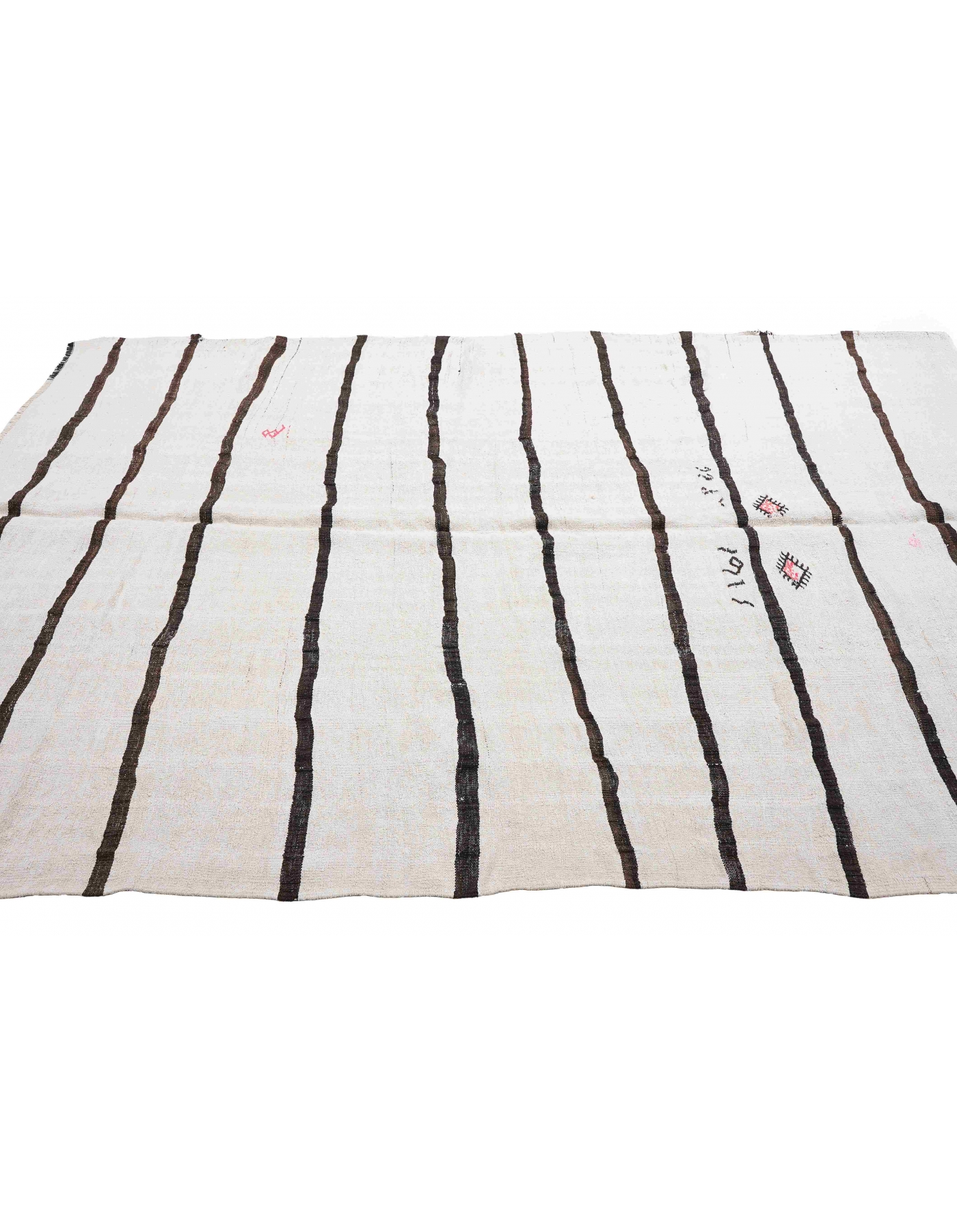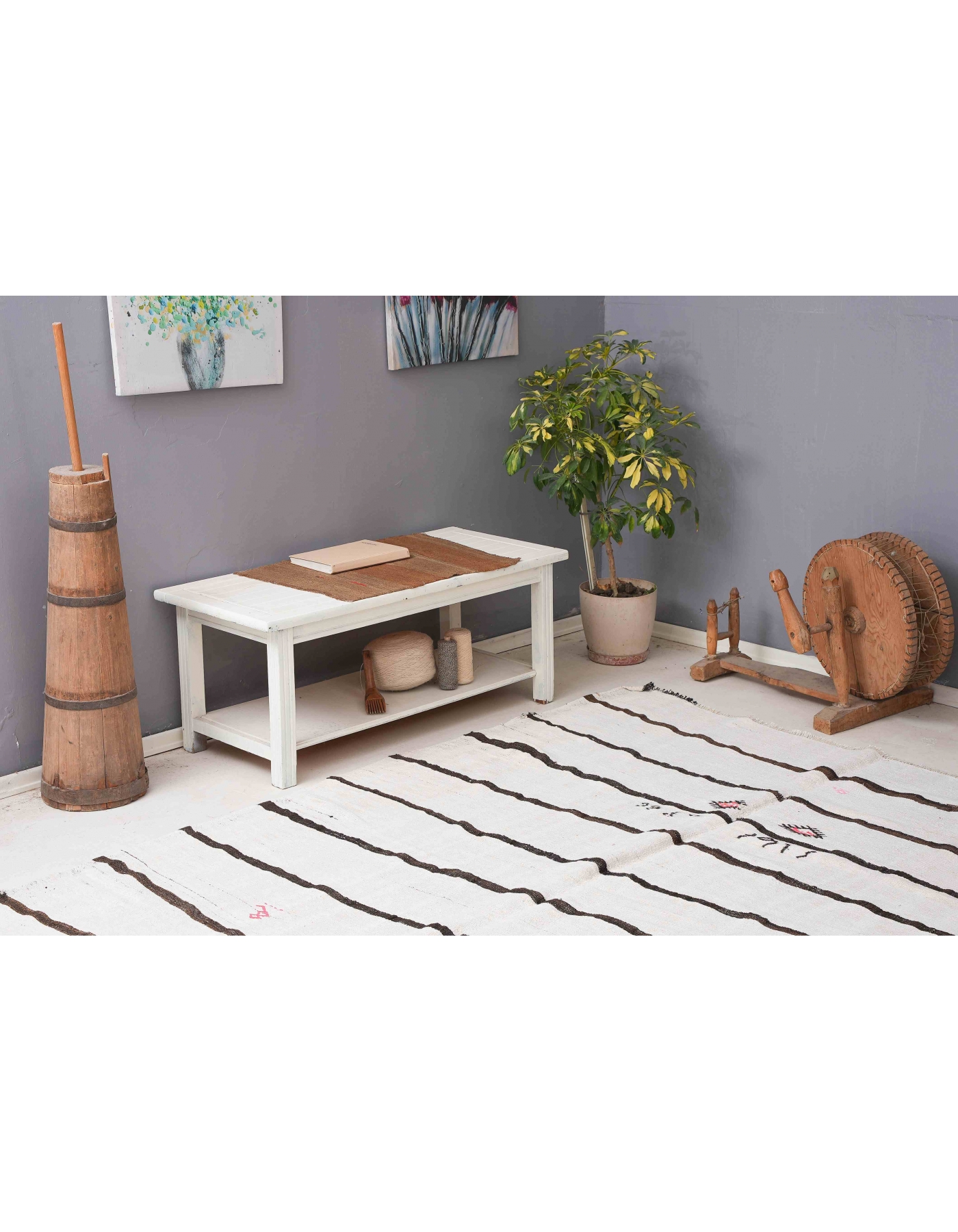 Striped White Black Hemp Kilim - 6`7" x 9`0"