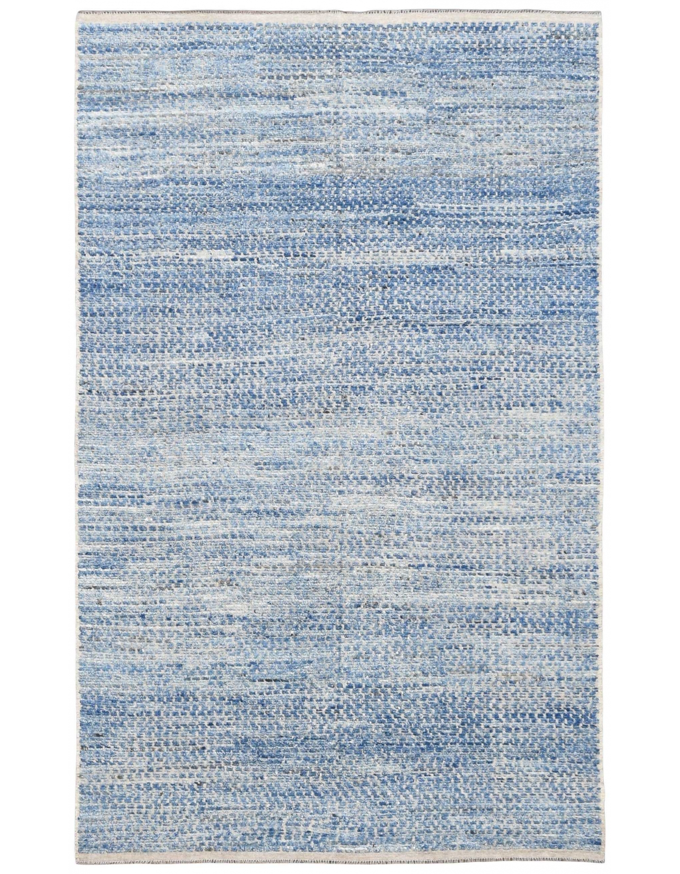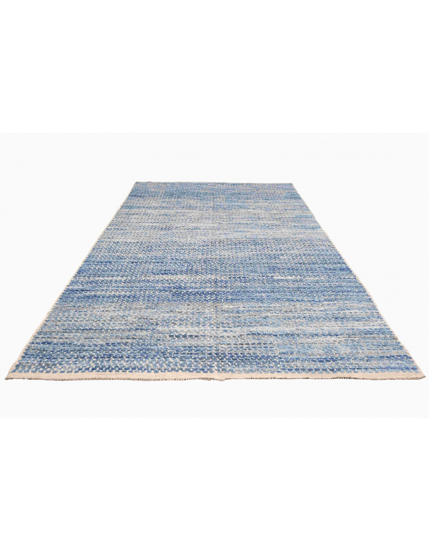 Blue Hand Knotted Modern Wool Rug - 5` 10″ x 9` 5″