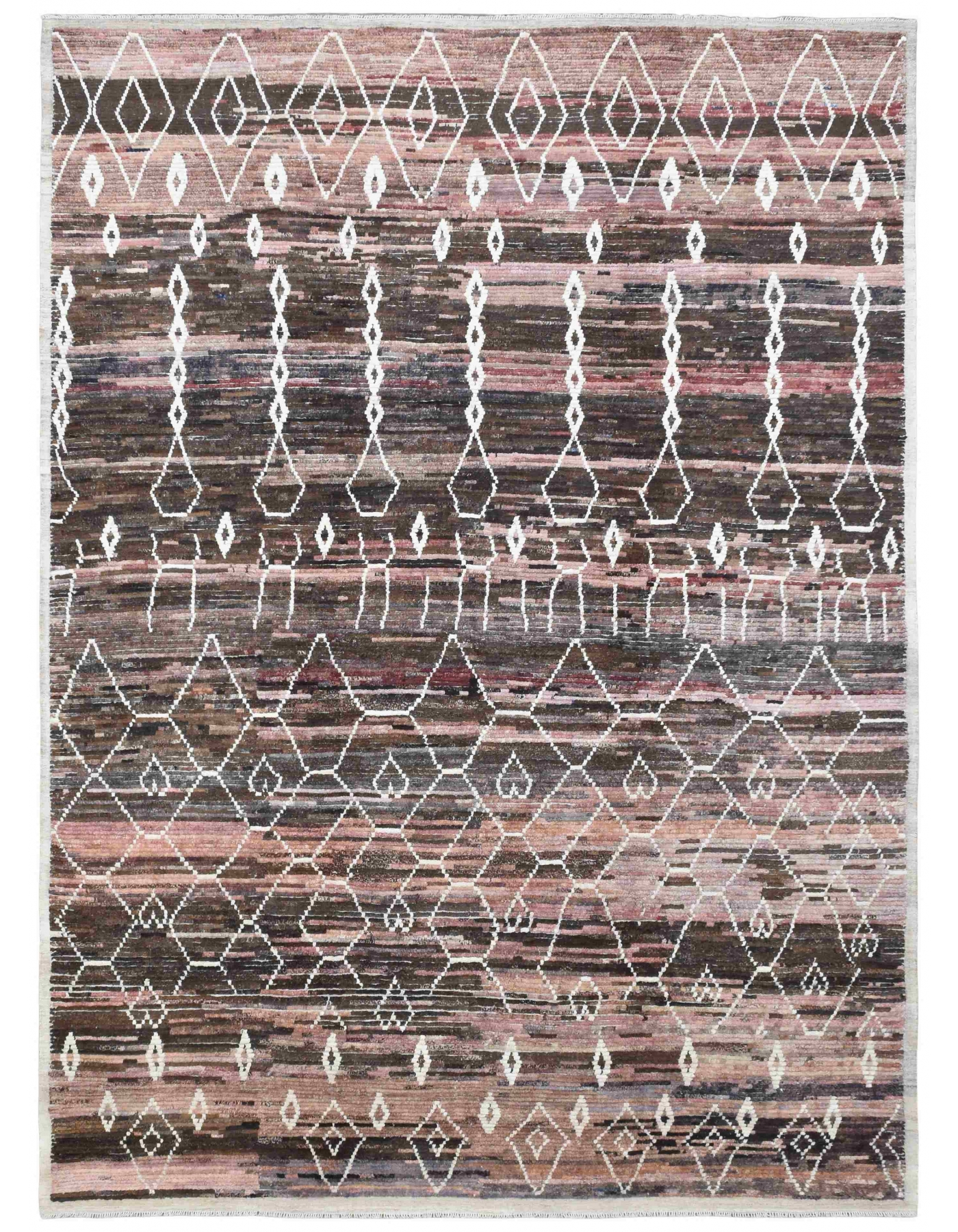 Pink & Brown Large Modern Wool Rug - 10` 2″ x 14″