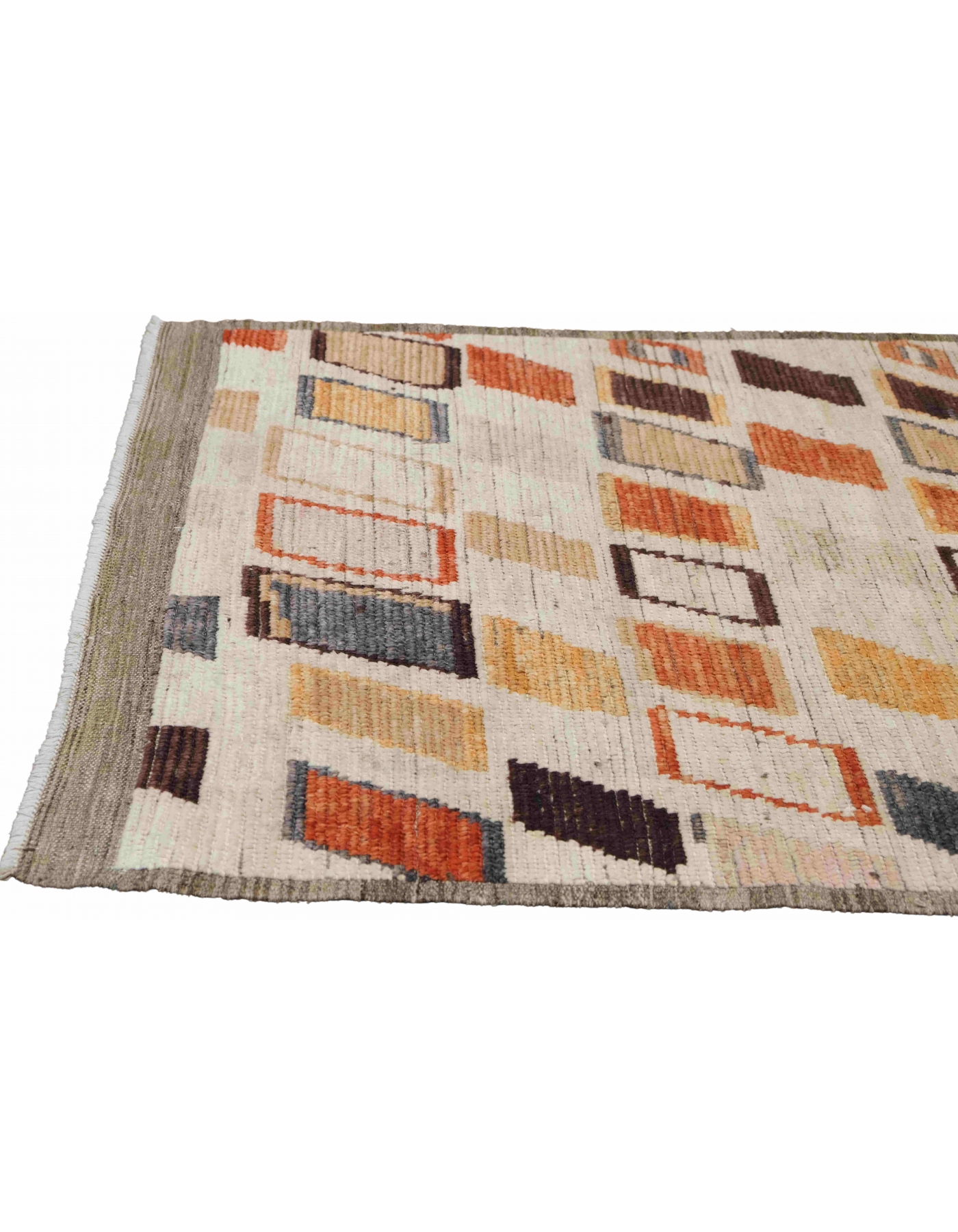Hand knotted unique rug newly made in Afghanistan using hand spun wool. In very good condition.