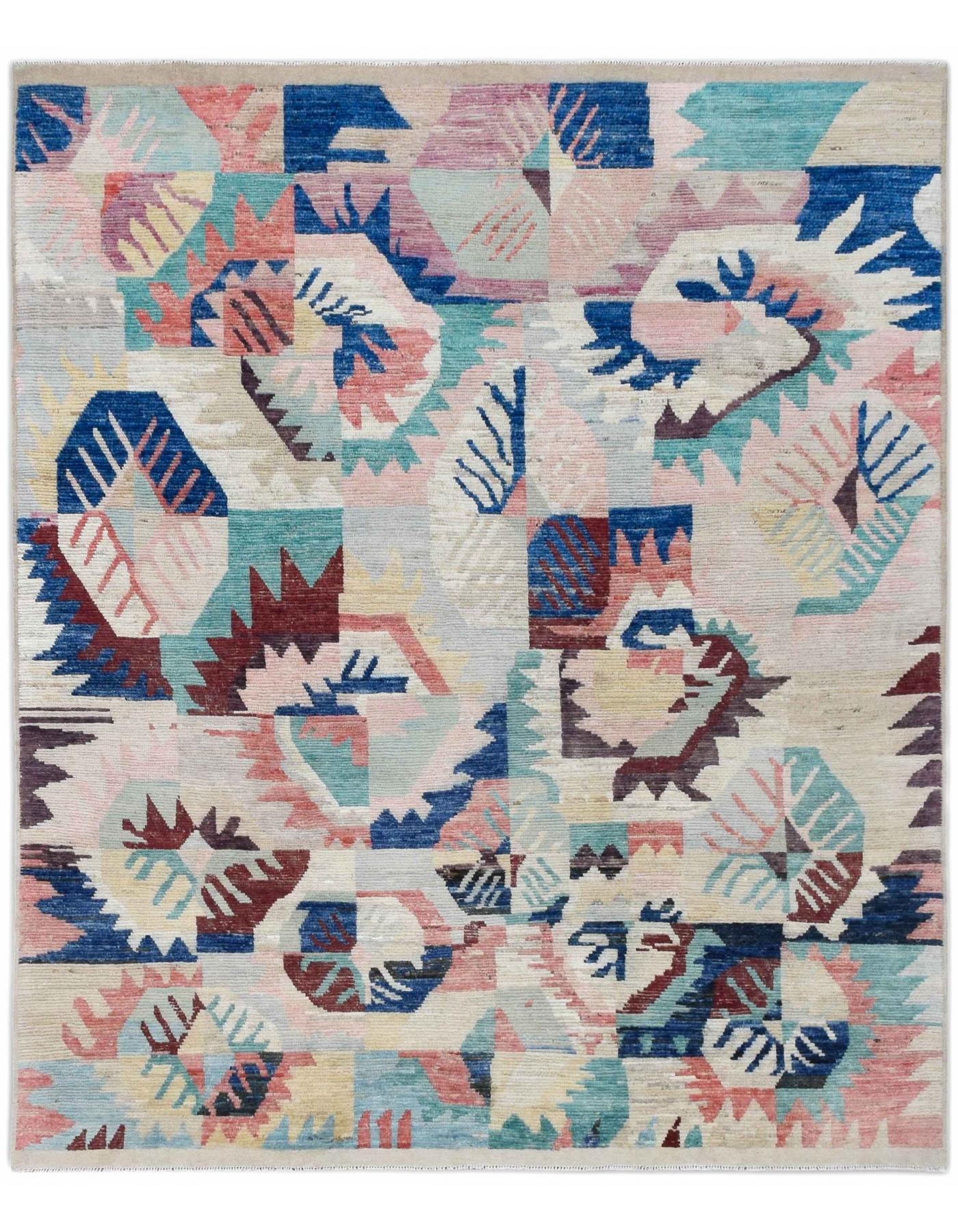 Modern Multicolor Hand Knotted Wool Rug - 8` 4″ x 10`