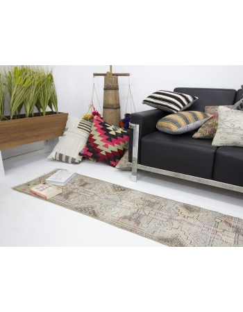 Vintage distressed mini runner rug from Konya region of Turkey. Approximately 50-60 years old. In very good condition.