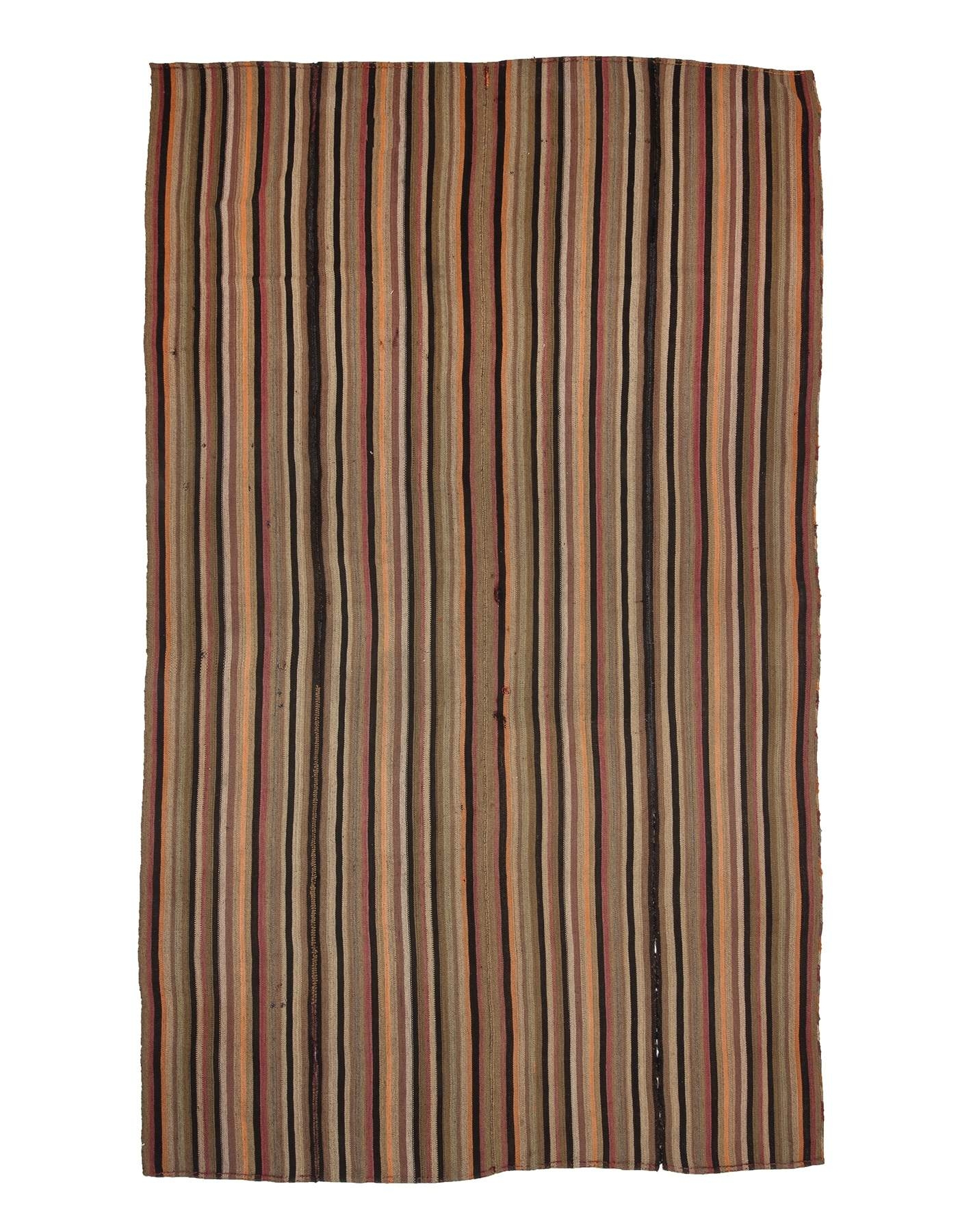 Handwoven vintage striped kilim rug from Kars region of Turkey. Approximately 60-70 years old. In very good condition.