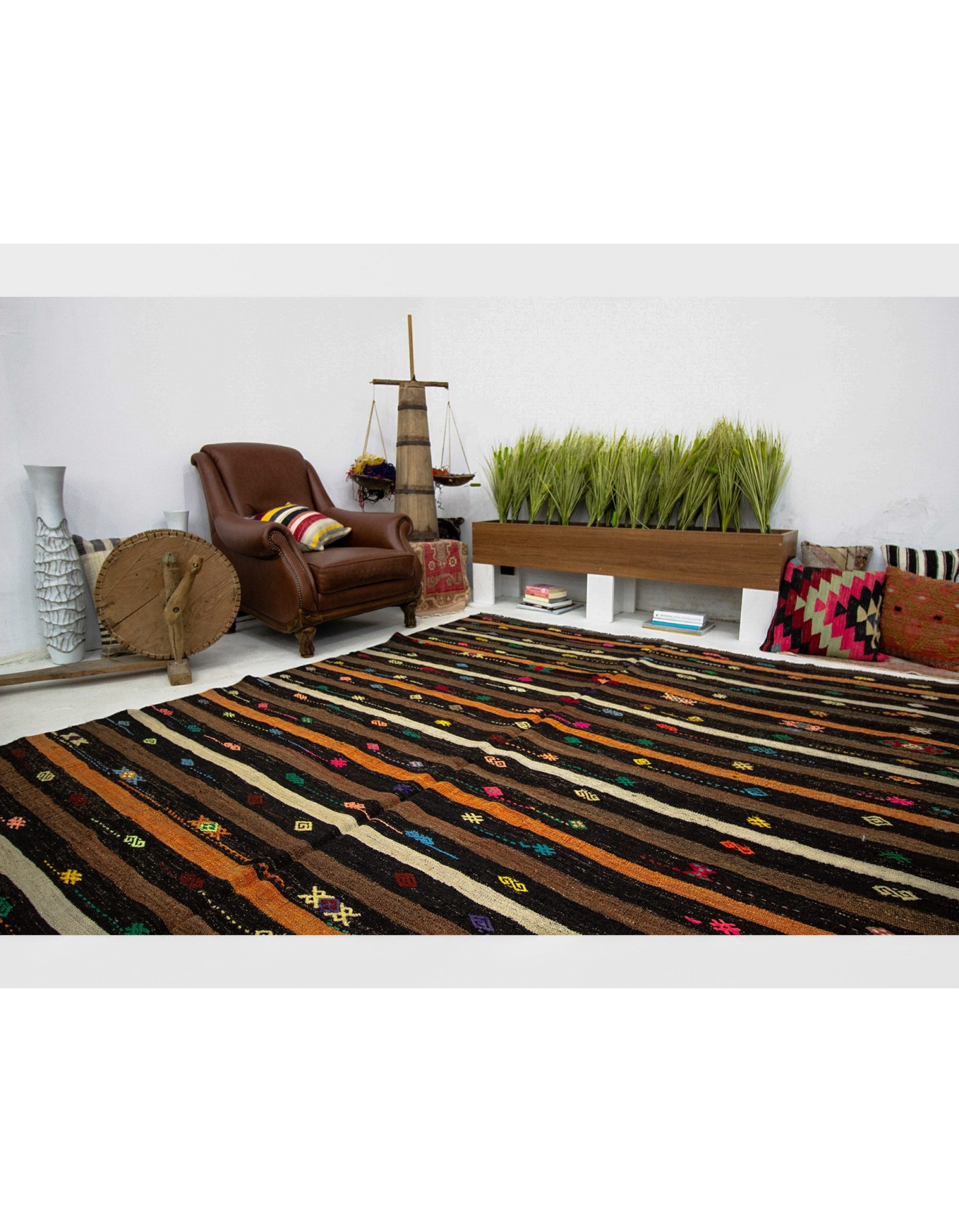 Vintage Striped Turkish Kilim Rug