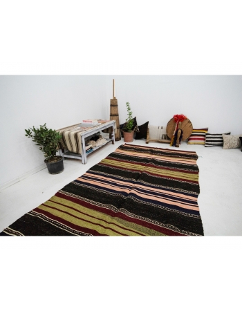 Vintage Striped Turkish Kilim Rug - 4`10" x 12`6"