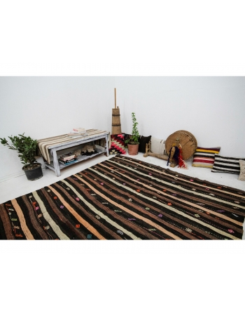Tags: Striped Rug, Turkish Anatolian Rug, Large Rug, Brown Rug, Rust Rug, Vintage Turkish Rug