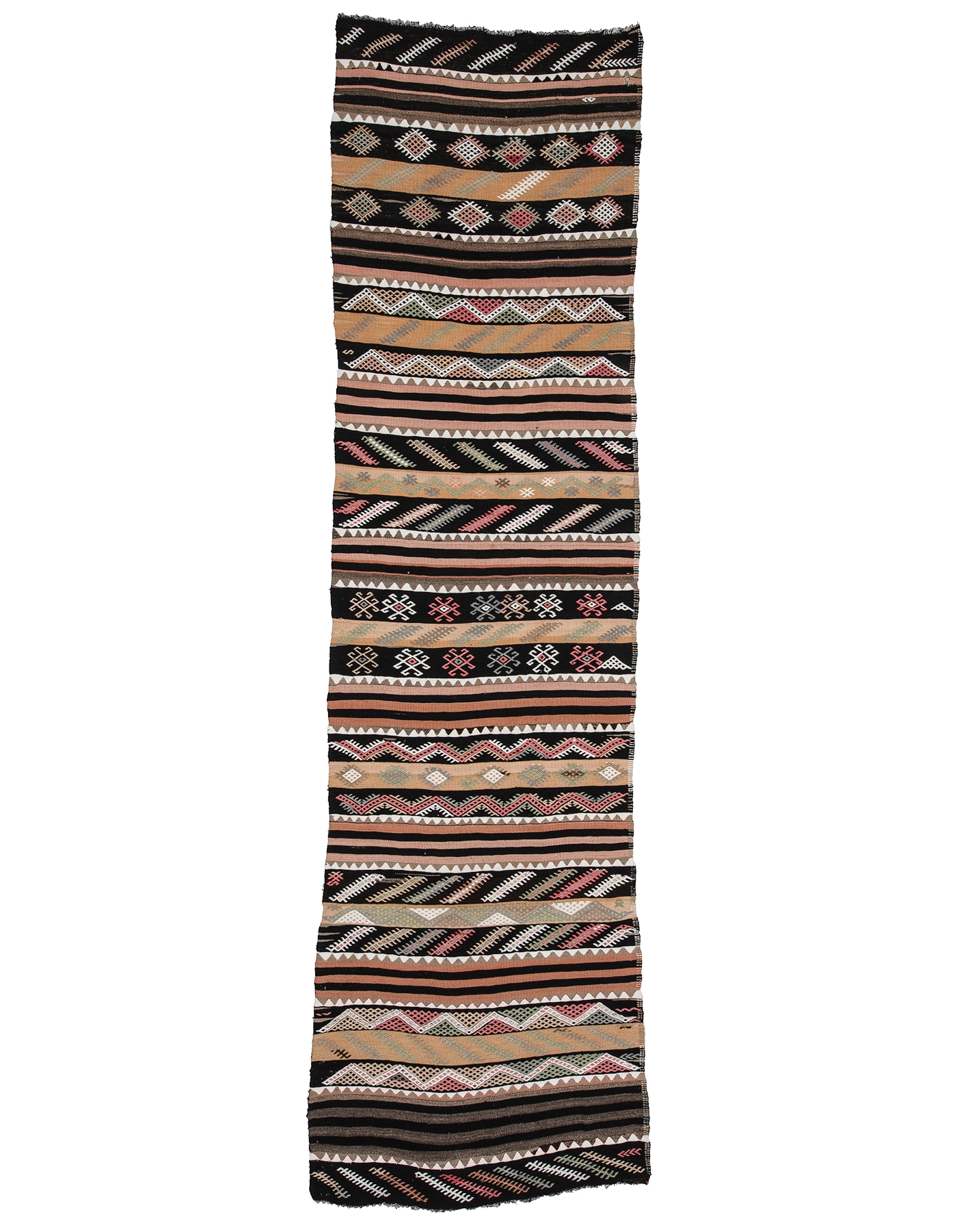 Embroidered Vintage Turkish Kilim Runner - 3`1" x 11`8"