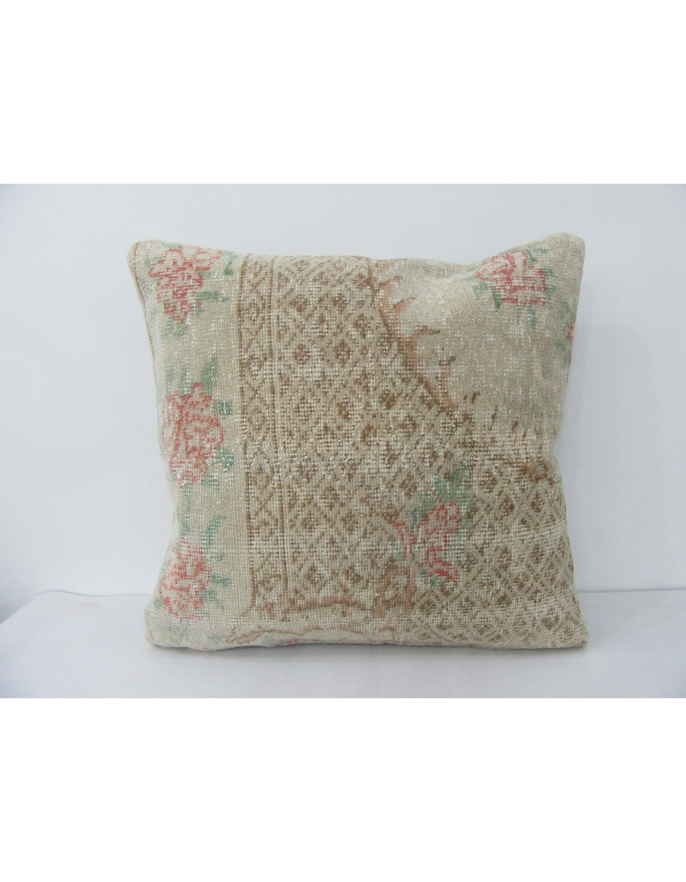 Decorative pillow cover made from a vintage Turkish handknotted rug. Backed with good quality cotton fabric. Pillow inserts not included. In good condition.