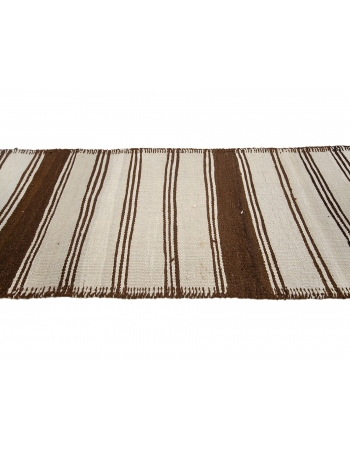 Striped Vintage Neutral Wool Kilim Runner - 2`9" x 9`7"