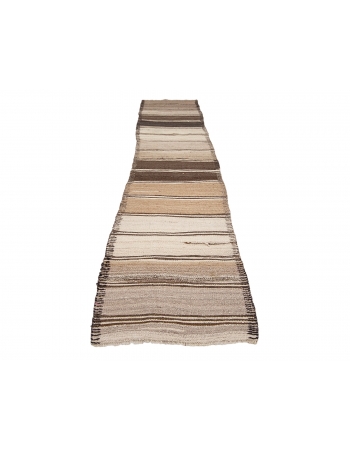 Vintage Natural Brown Kilim Runner - 2`9" x 13`9"