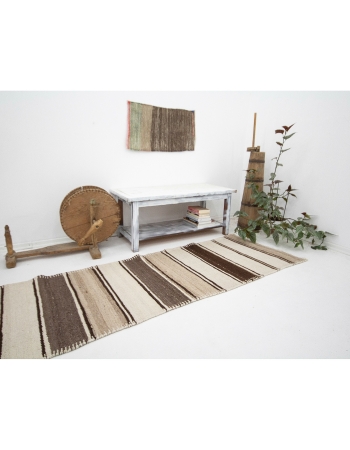 Brown & Cream Striped Vintage Kilim Runner - 2`7" x 12`6"