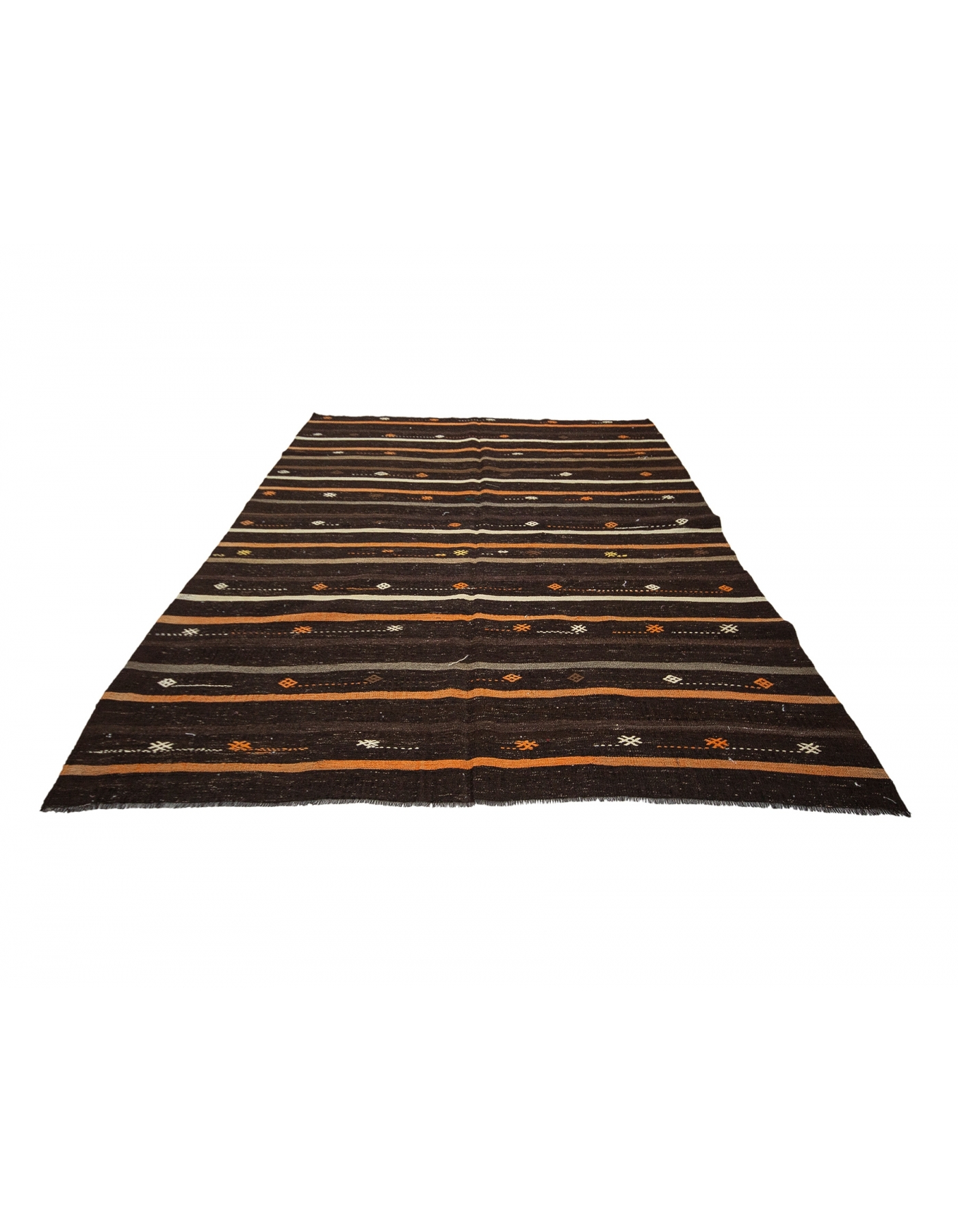 Orange & Brown Goat Hair Vintage Kilim - 7`5" x 9`6"