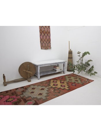 Vintage Decorative Turkish Kilim Runner Rug - 3`1" x 11`10"