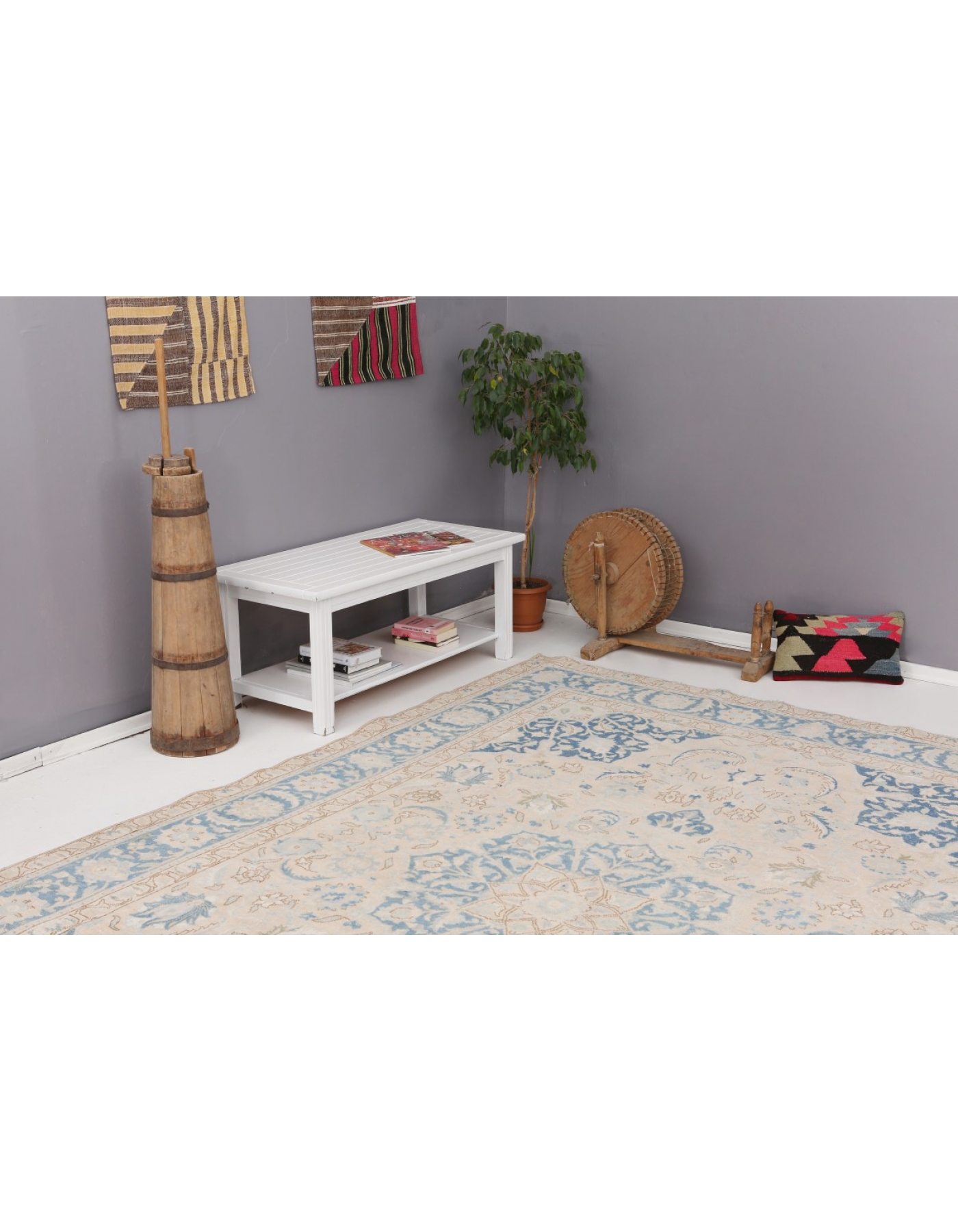 Handknotted vintage washed out large Tabriz rug. Approximately 60-70 years old. In very good condition.