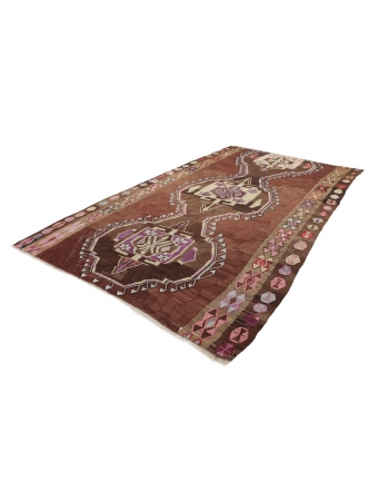 Vintage handwoven decorative kilim rug from Kars region of Turkey. Approximately 50-60 years old. In very good condition.