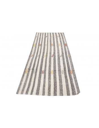 Gray & White Vintage Kilim Rug - 3`3" x 7`7"