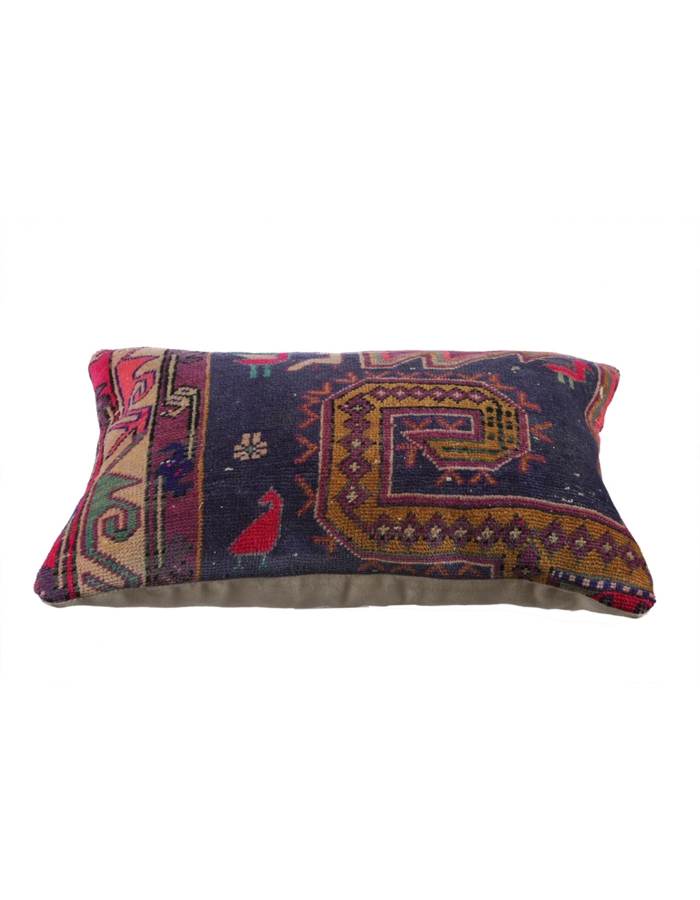 Decorative pillow cover made from vintage handknotted Turkish rug pieces. Backed with good quality cotton fabric. Pillow inserts not included. In very good condition.