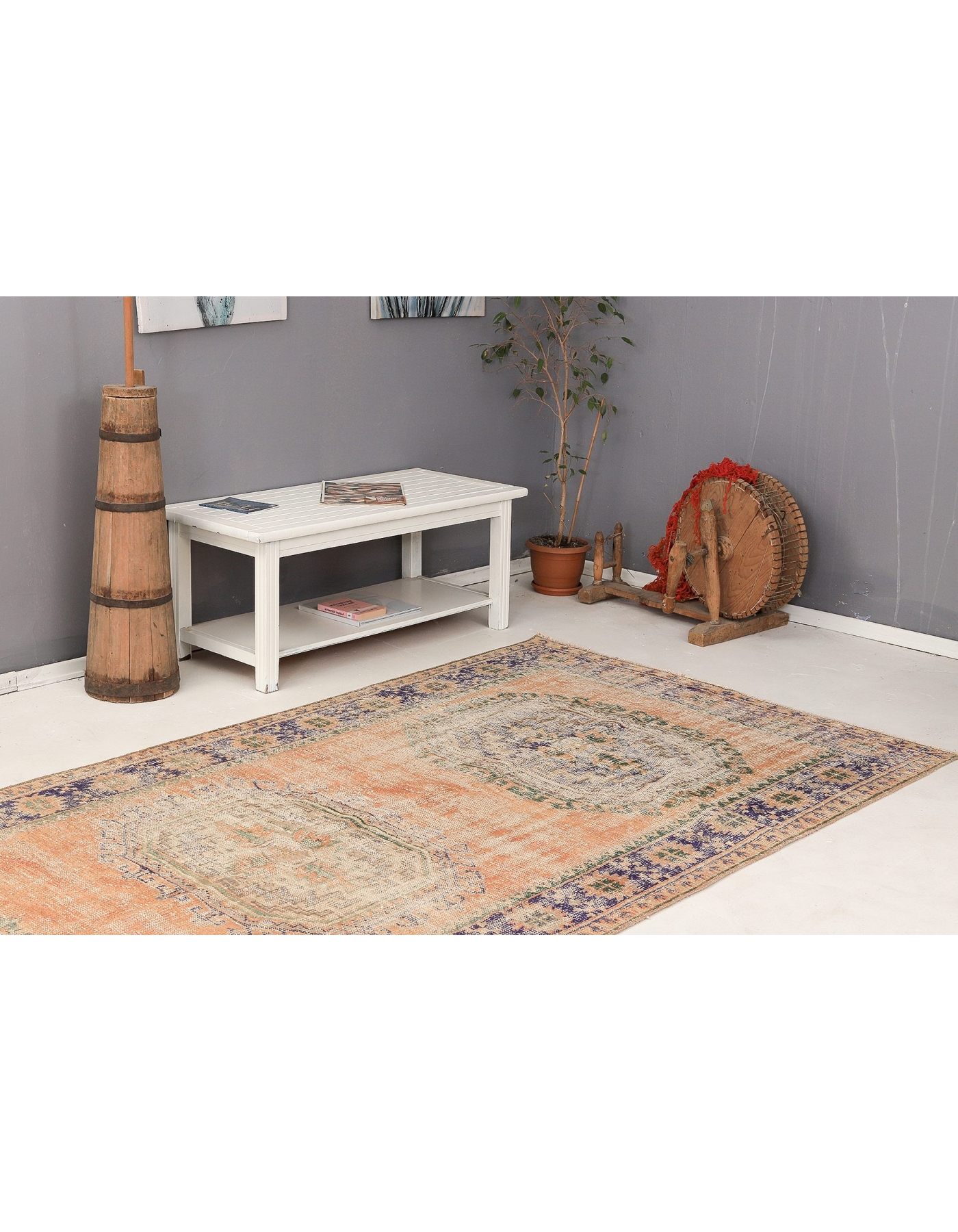 Distressed Vintage Turkish Oushak Rug - 4`11" x 11`2"