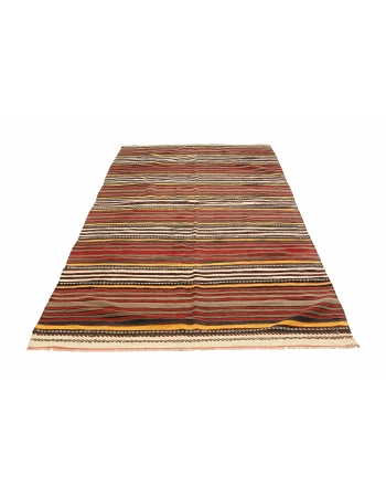 Striped Vintage Turkish Kilim Rug - 5`1" x 11`0"