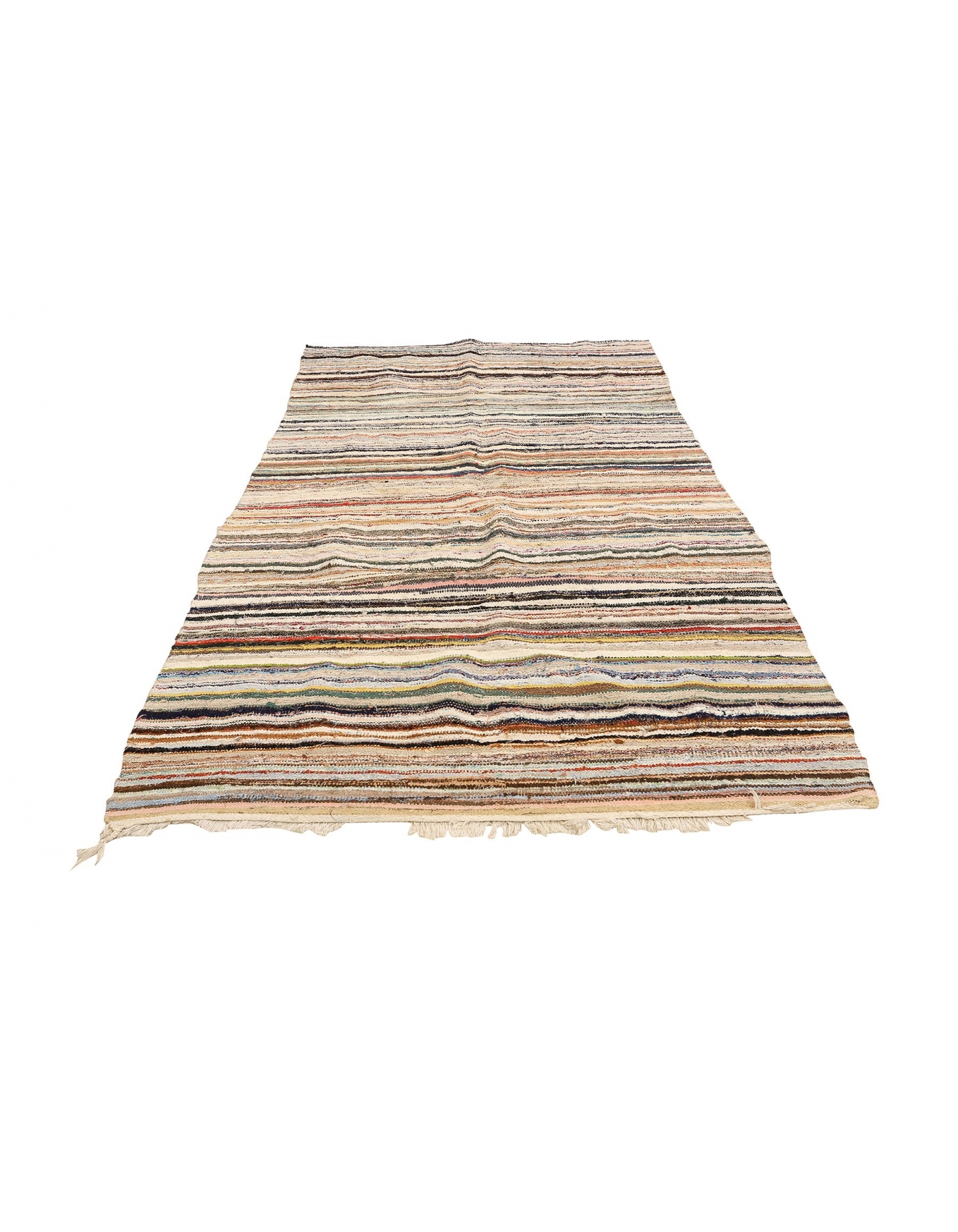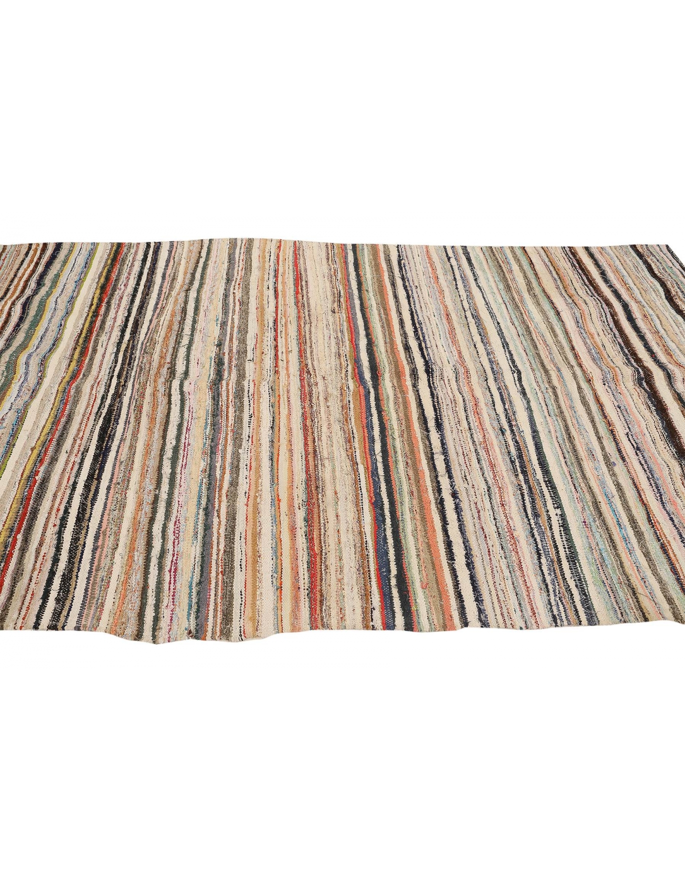 Vintage Striped Rag Kilim - 5`2" x 9`9"