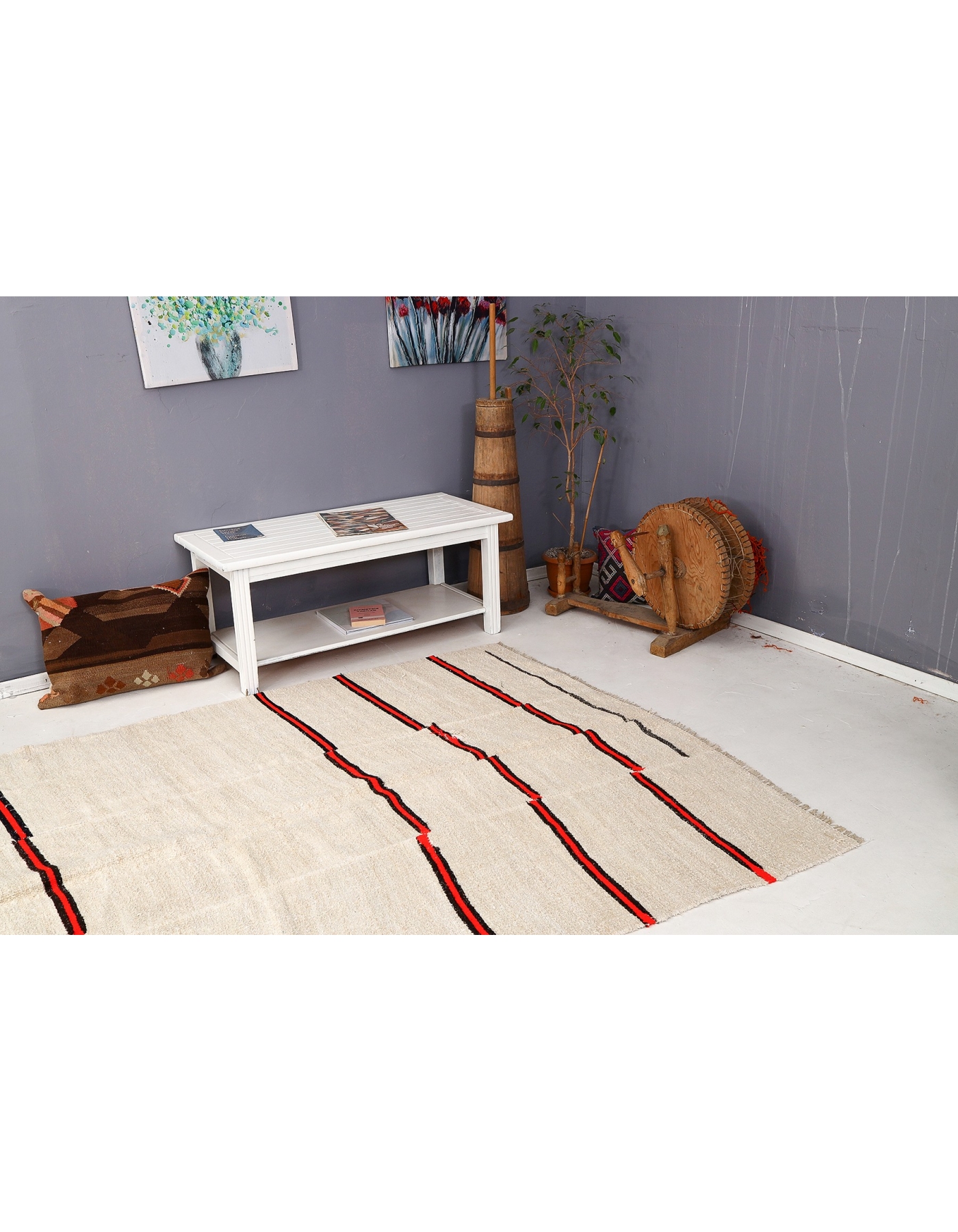 Orange & Ivory Striped Hemp Kilim Rug - 5`9" x 9`7"