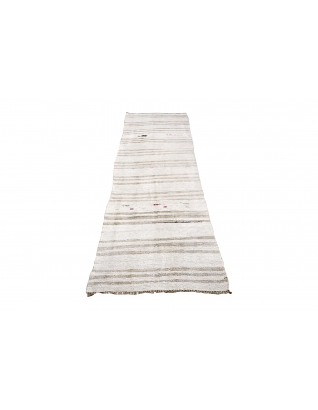 Beige & White Hemp Kilim Runner - 2`7" x 12`0"