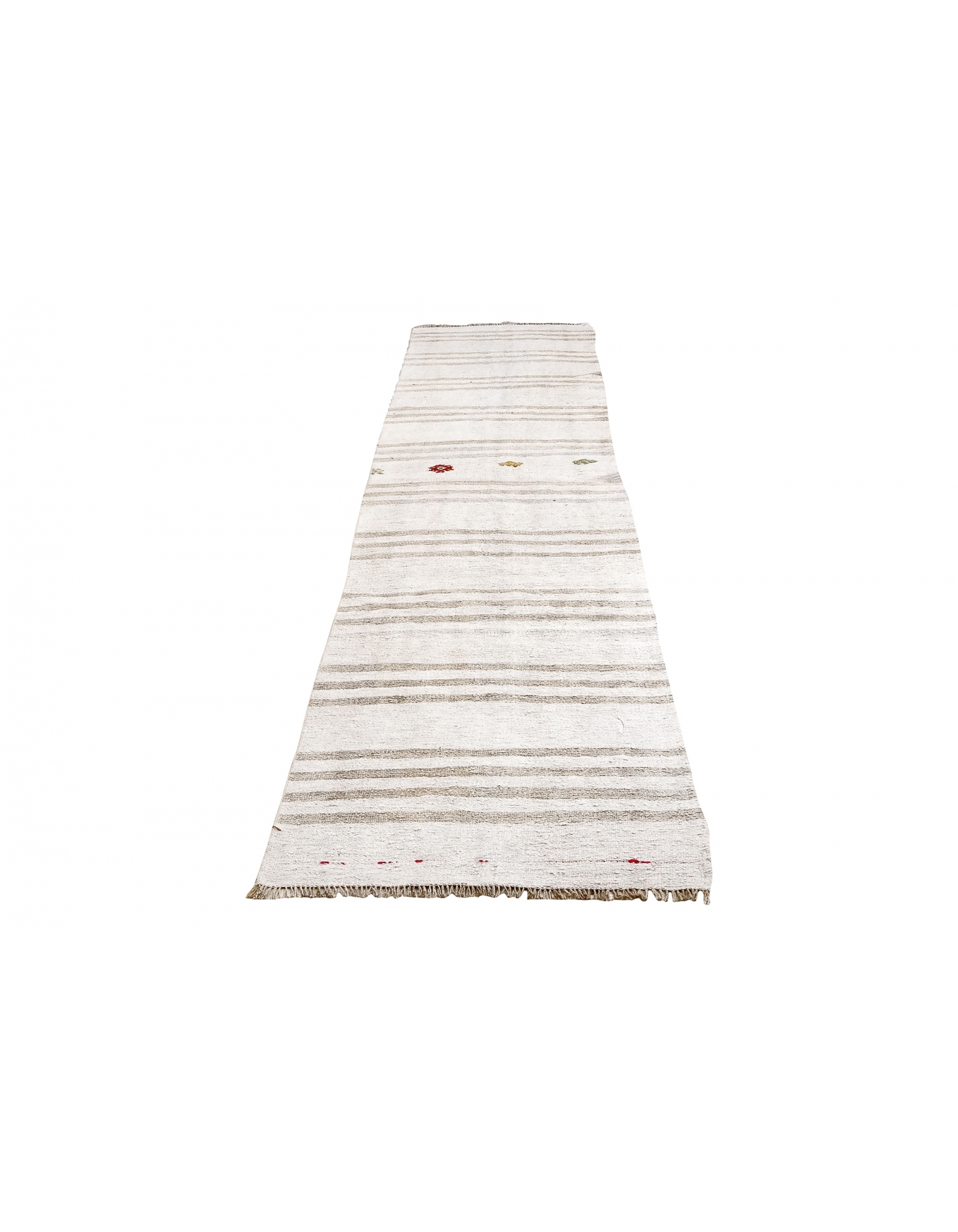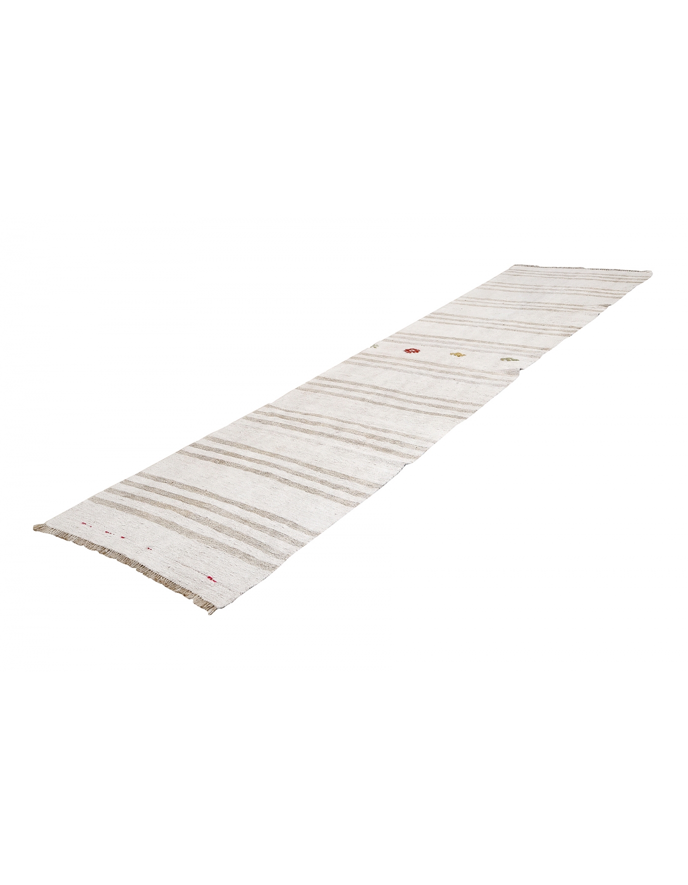 Beige & White Hemp Kilim Runner - 2`8" x 12`2"