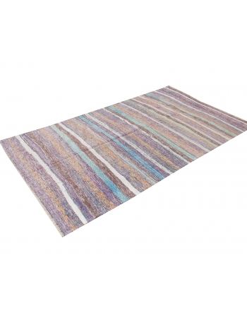 Vintage Striped Turkish Rag Kilim Rug - 5`8" x 10`0"