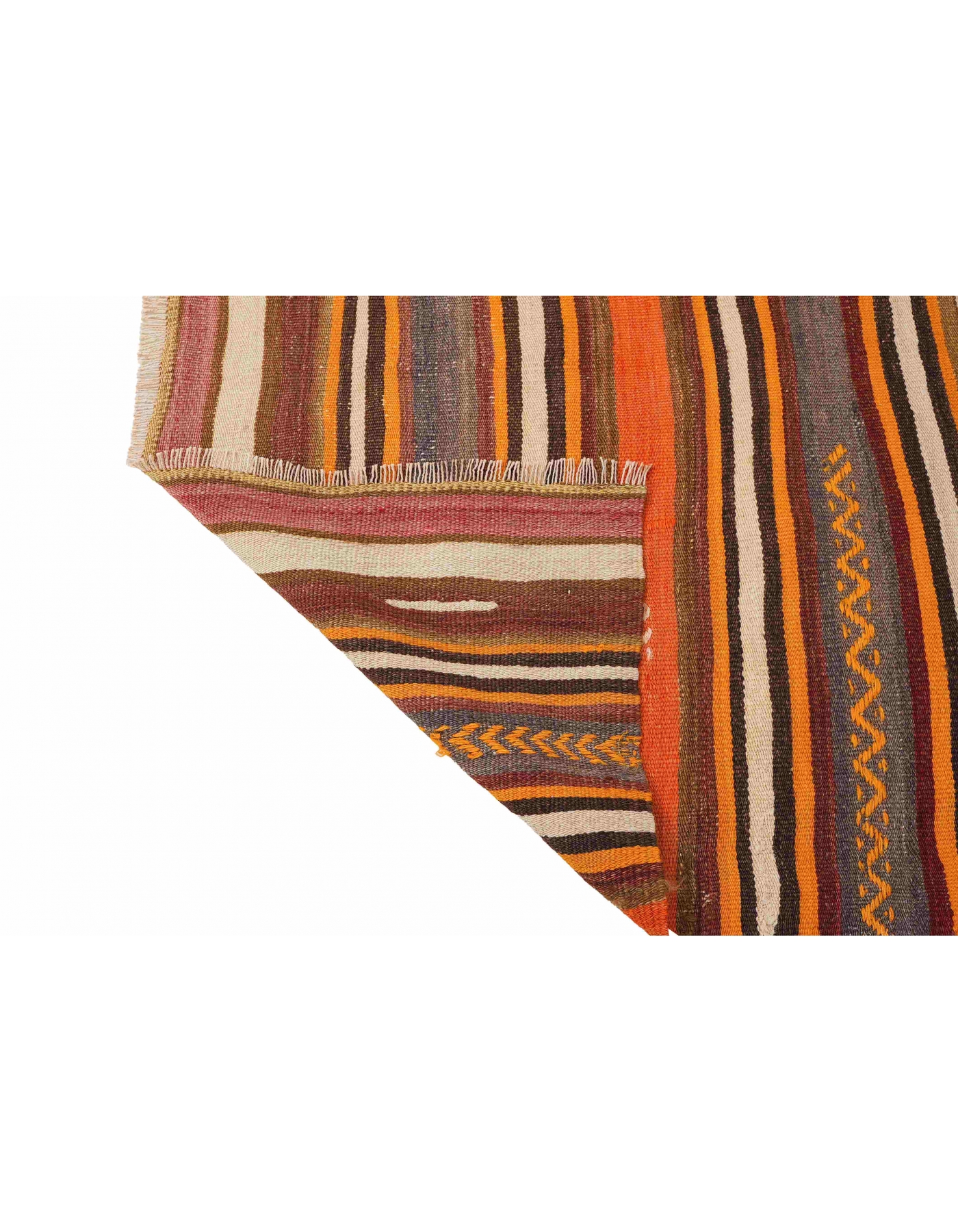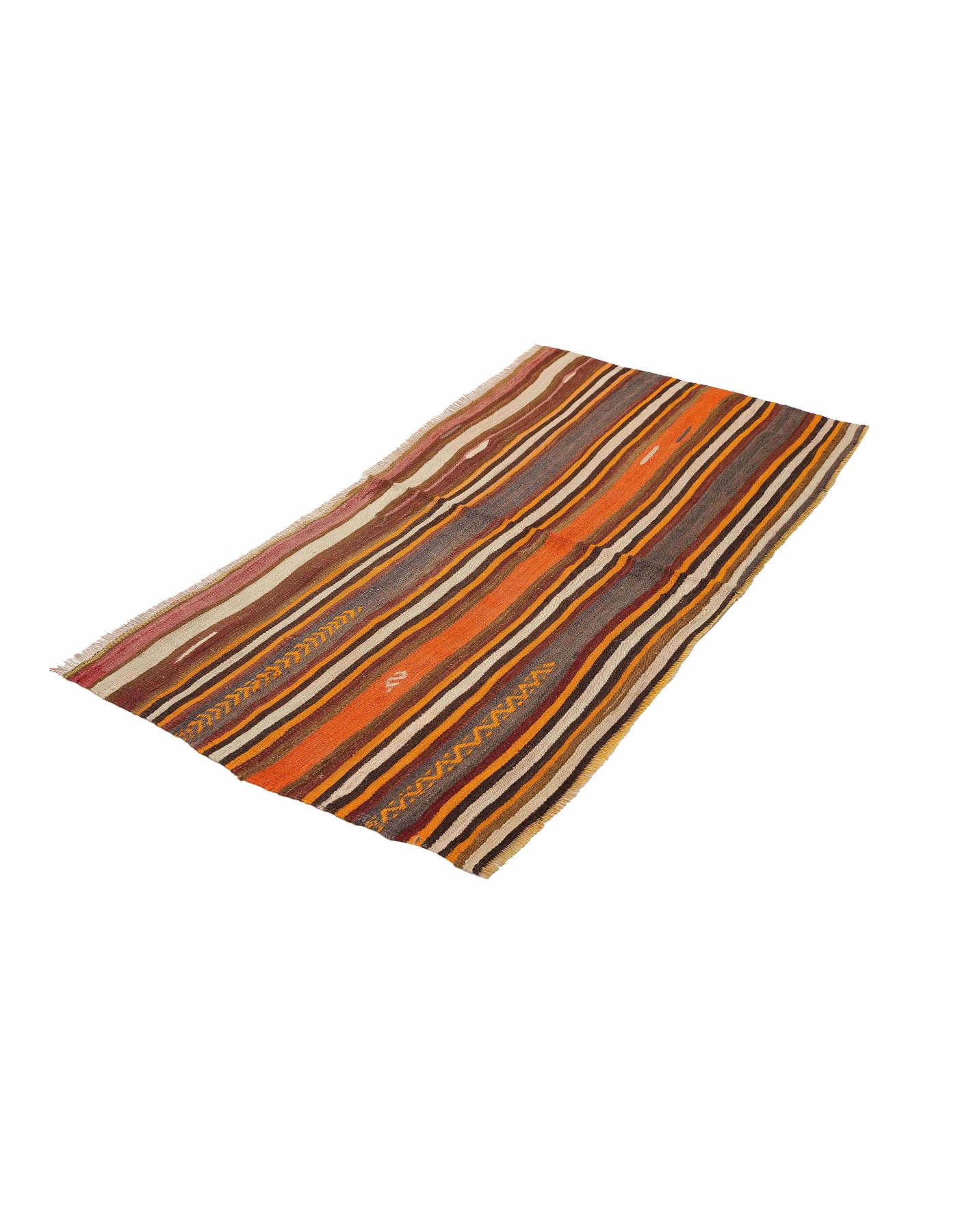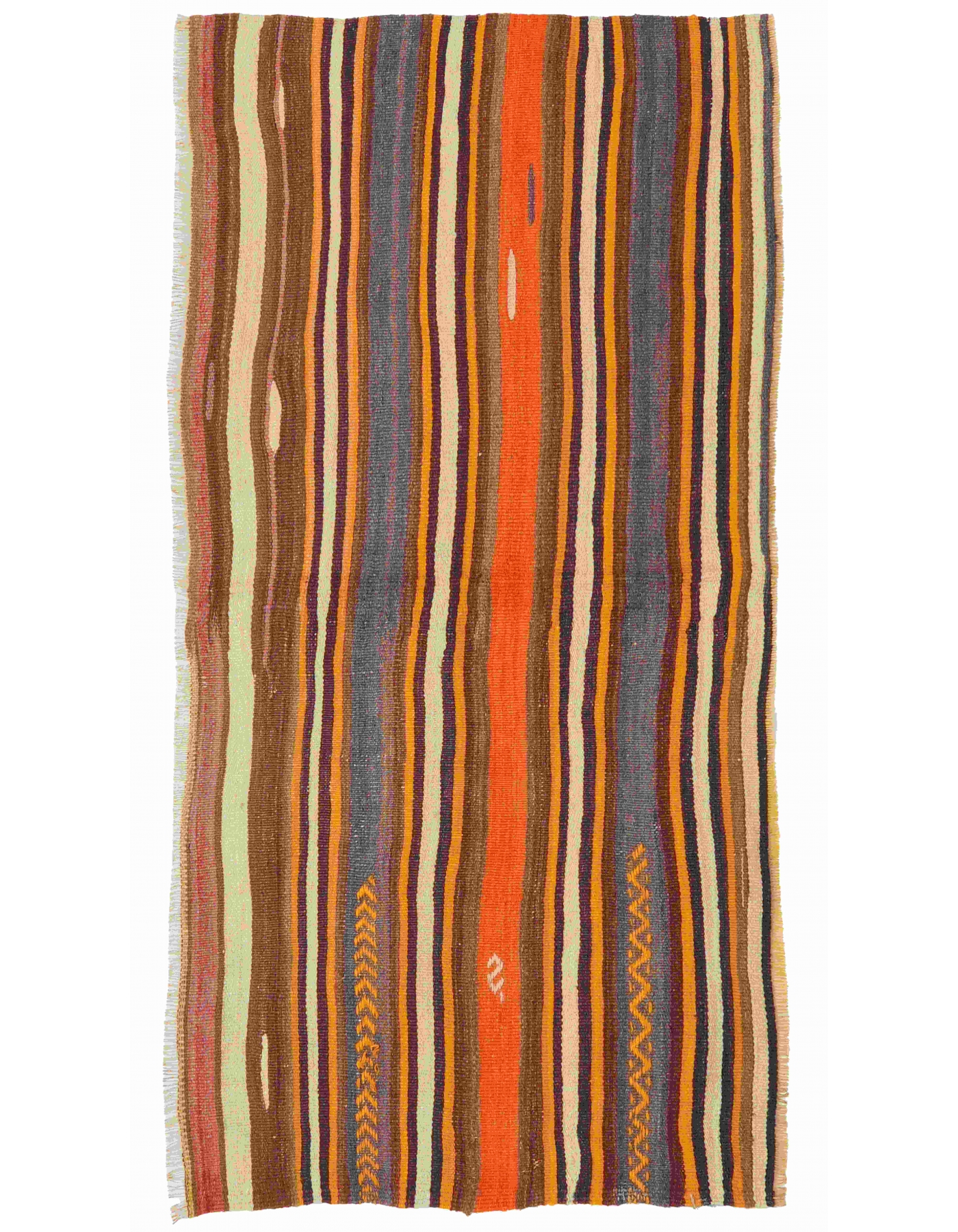 Handwoven vintage striped decorative kilim rug from Denizli region of Turkey. Approximately 50-60 years old. In very good condition.