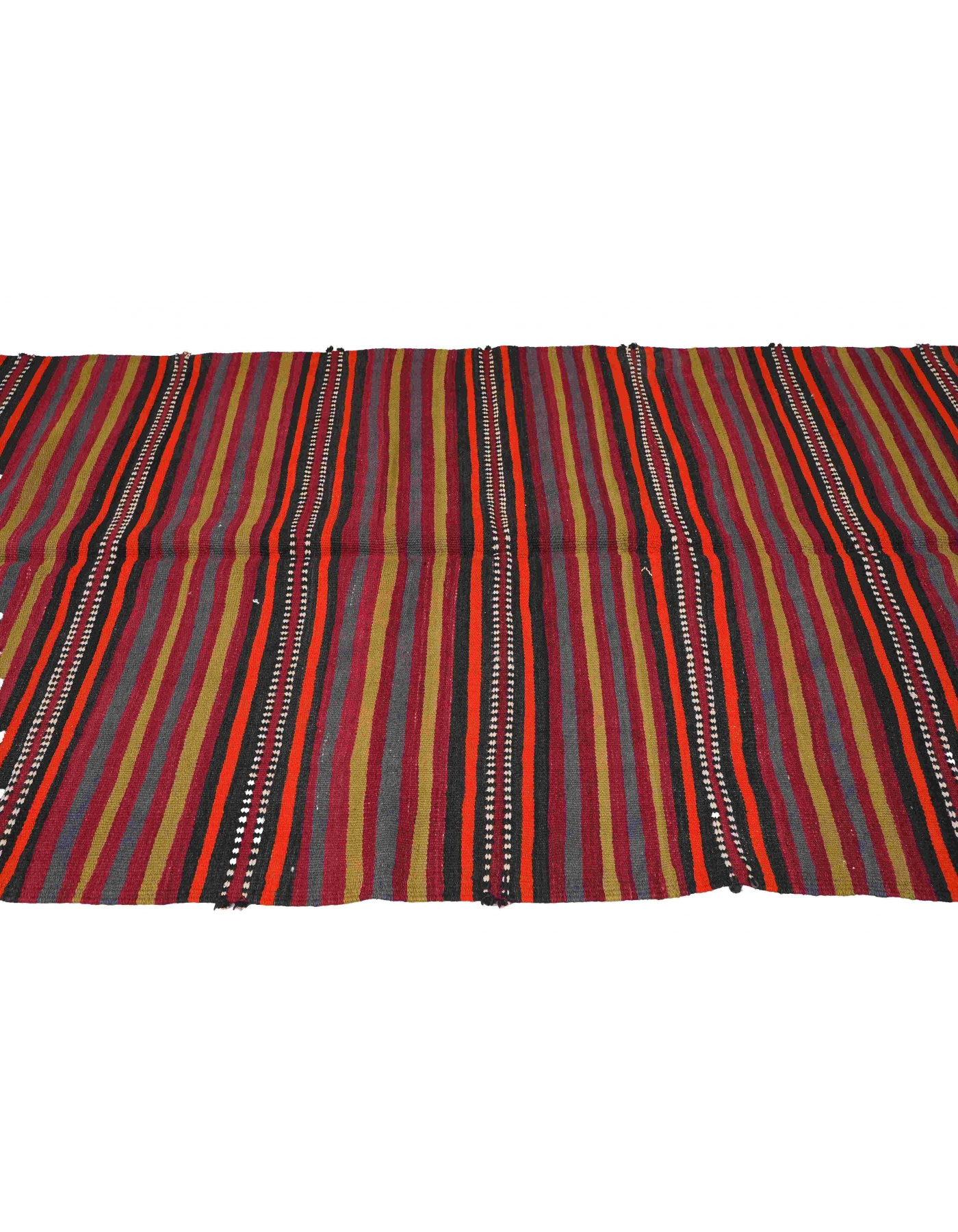 Handwoven vintage striped decorative kilim rug from Denizli region of Turkey. Approximately 50-60 years old. In very good condition.