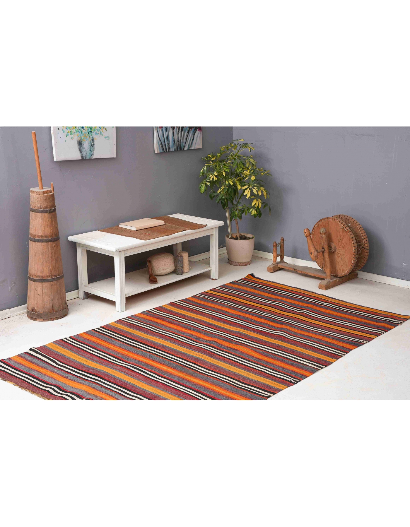Vintage Turkish Striped Kelim Rug - 4`11" x 8`2"