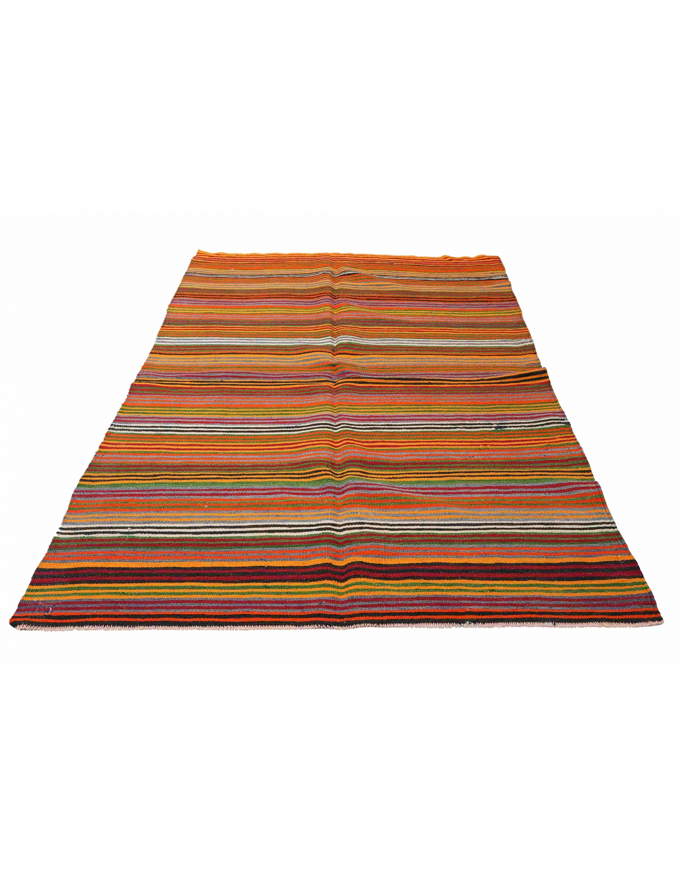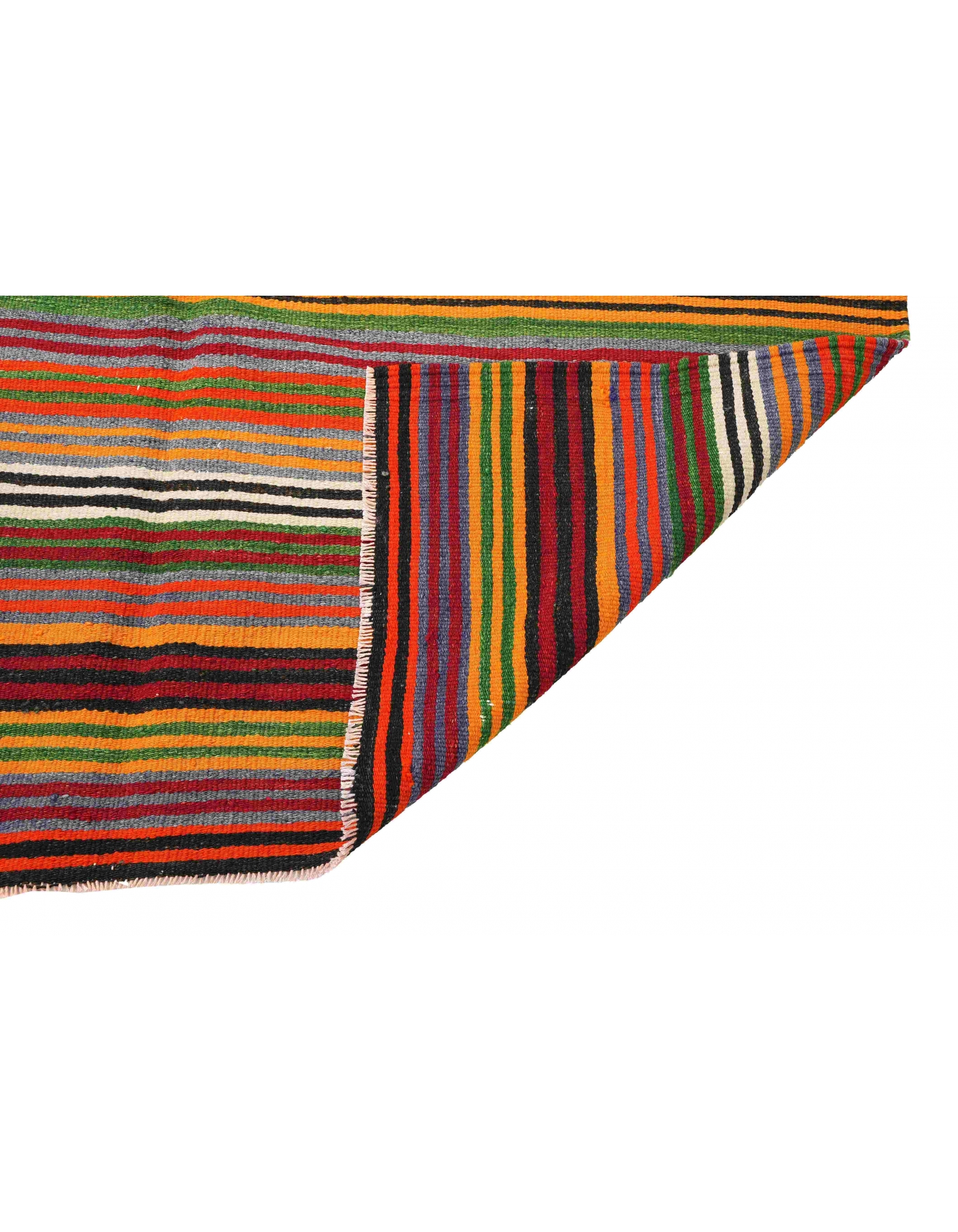 Handwoven vintage striped decorative kilim rug from Denizli region of Turkey. Approximately 50-60 years old. In very good condition.