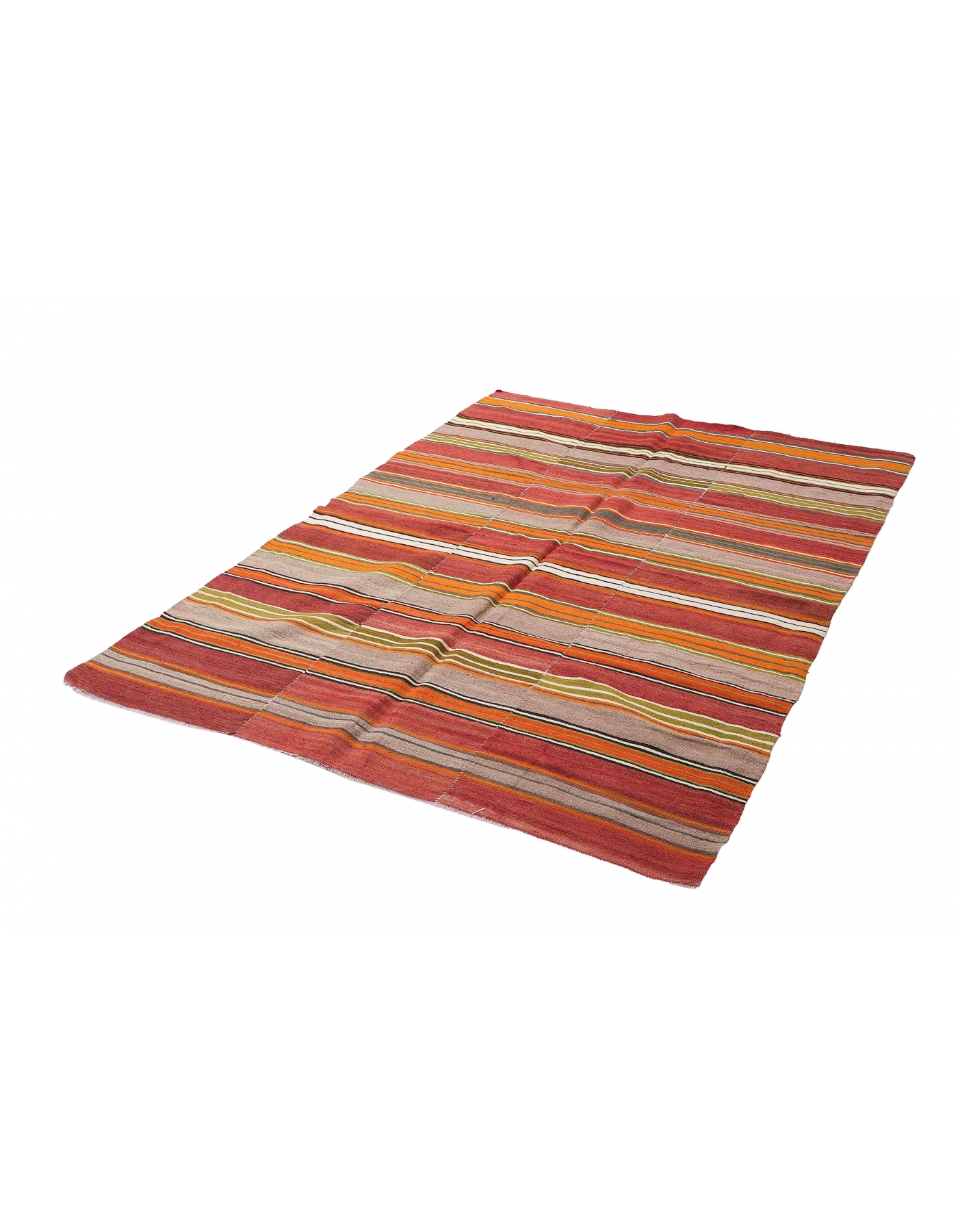 Handwoven vintage striped decorative kilim rug from Denizli region of Turkey. Approximately 50-60 years old. In very good condition.