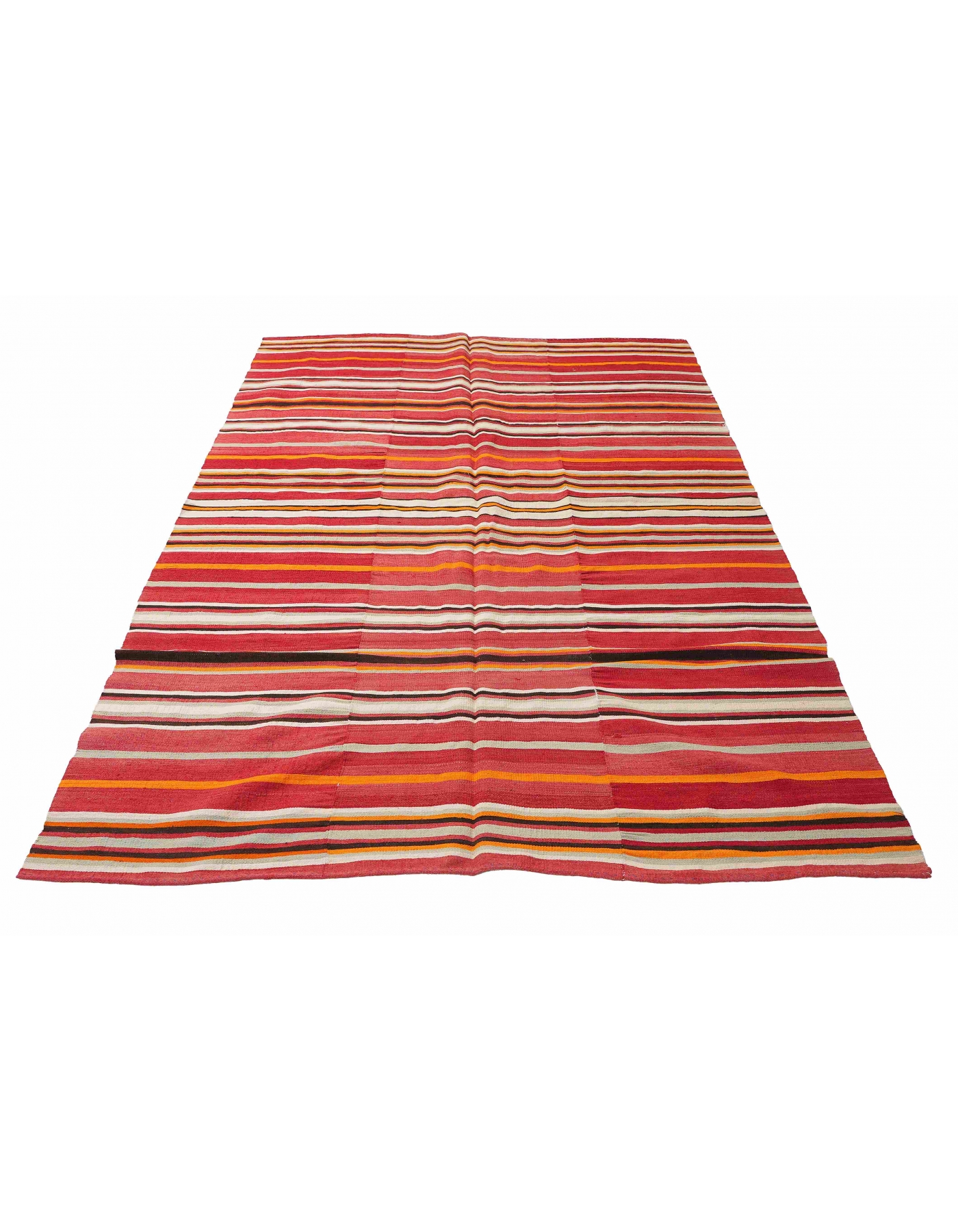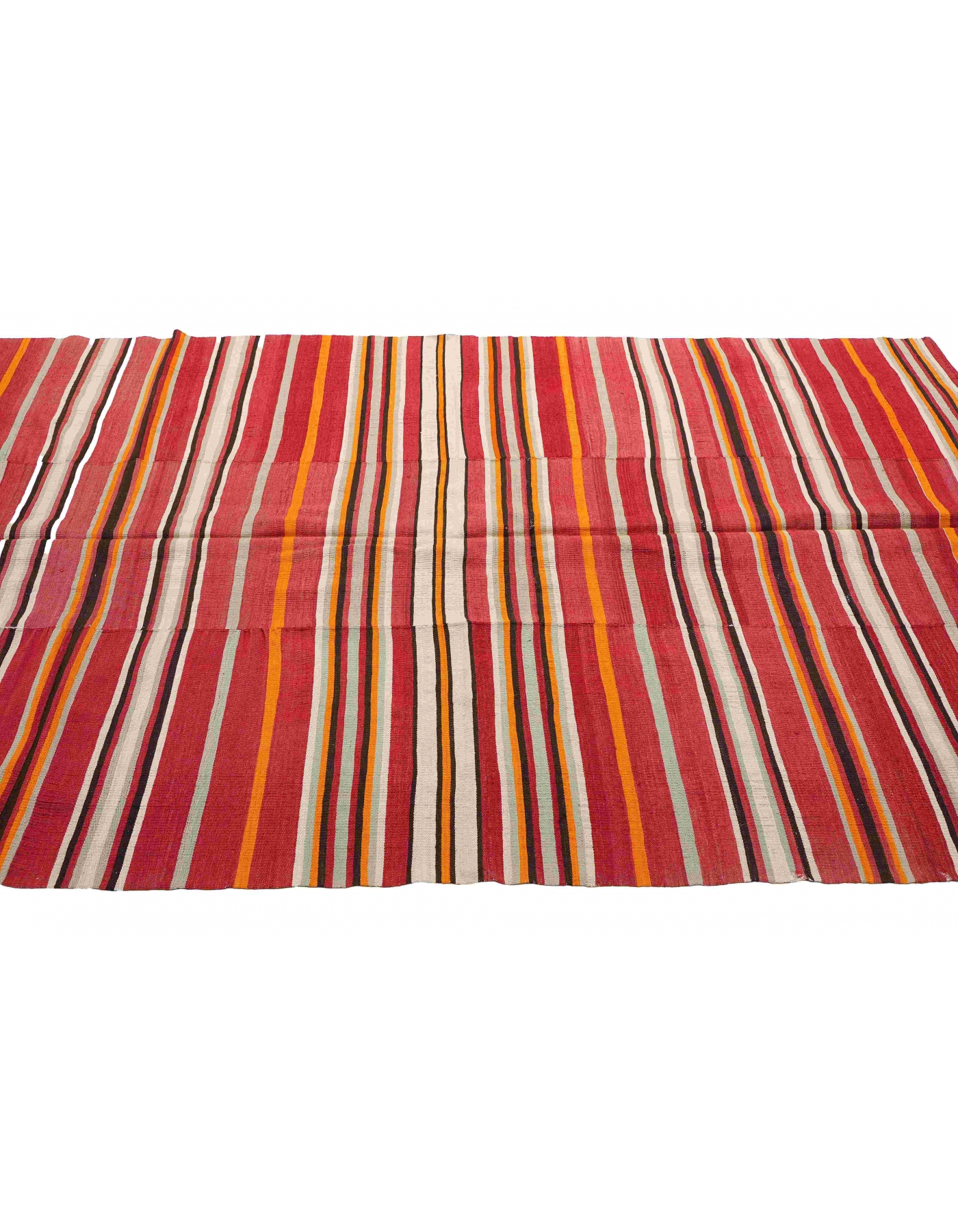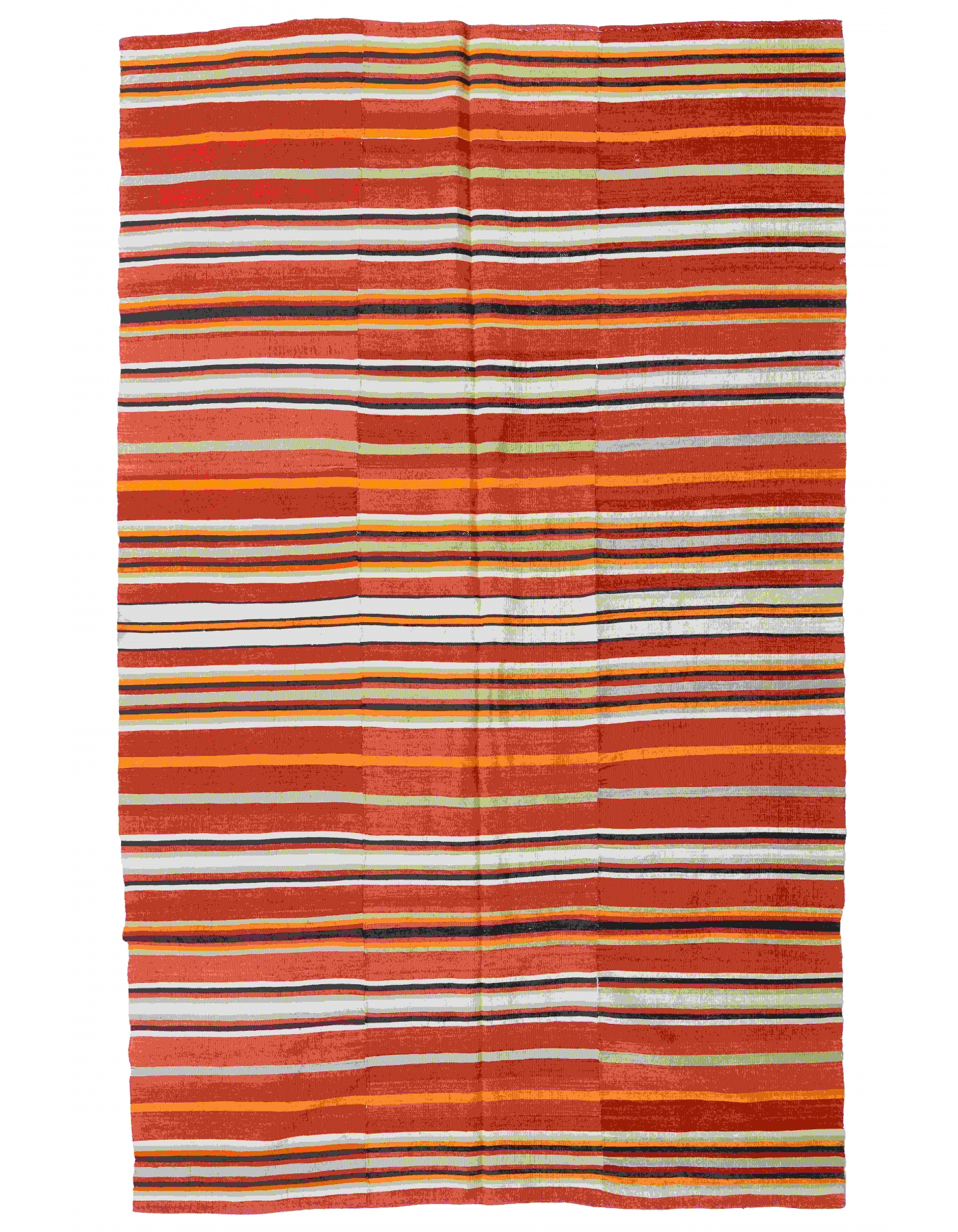 Handwoven vintage striped decorative kilim rug from Denizli region of Turkey. Approximately 50-60 years old. In very good condition.