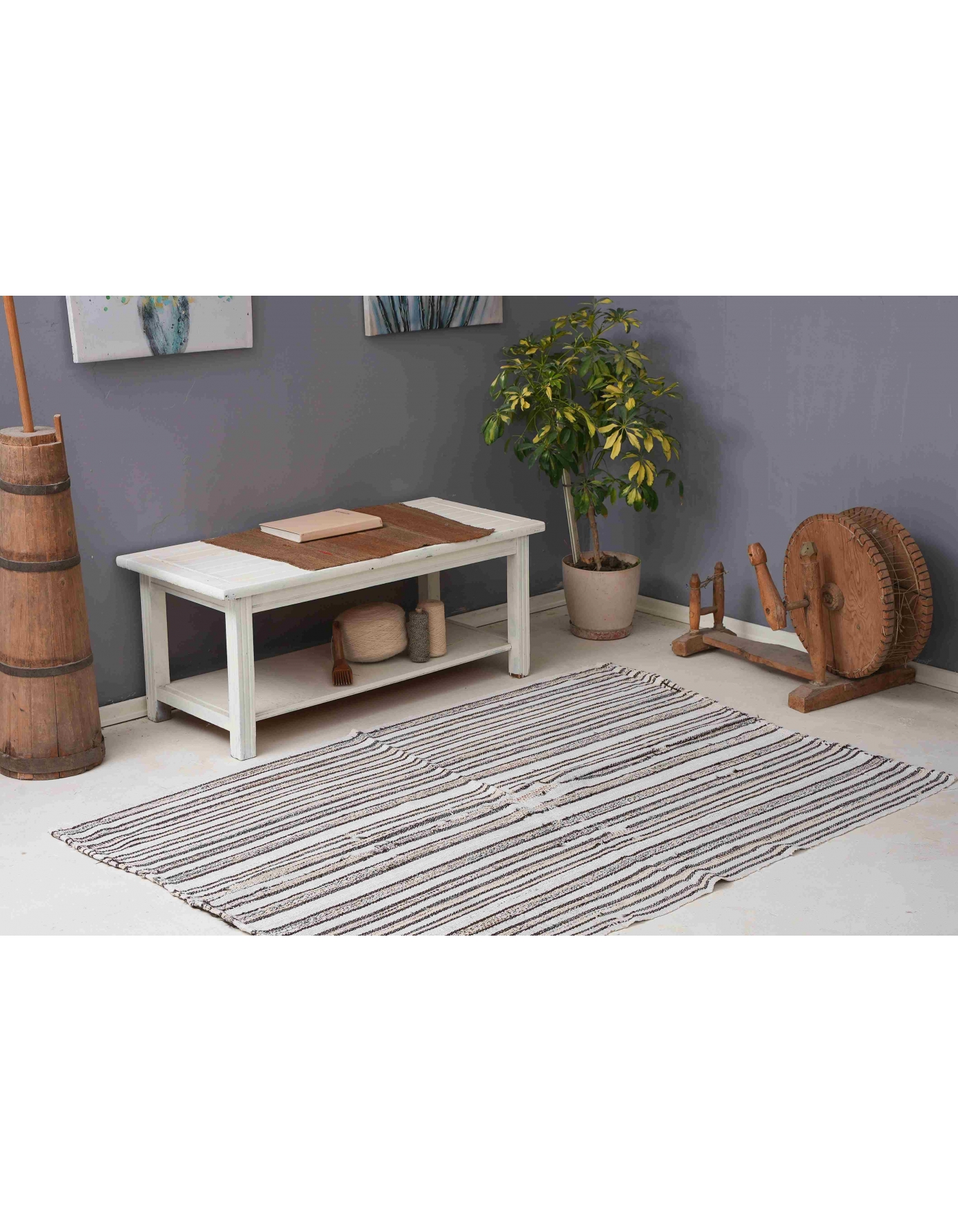 Striped Vintage Turkish Hemp Kilim Rug - 4`7" x 6`4"