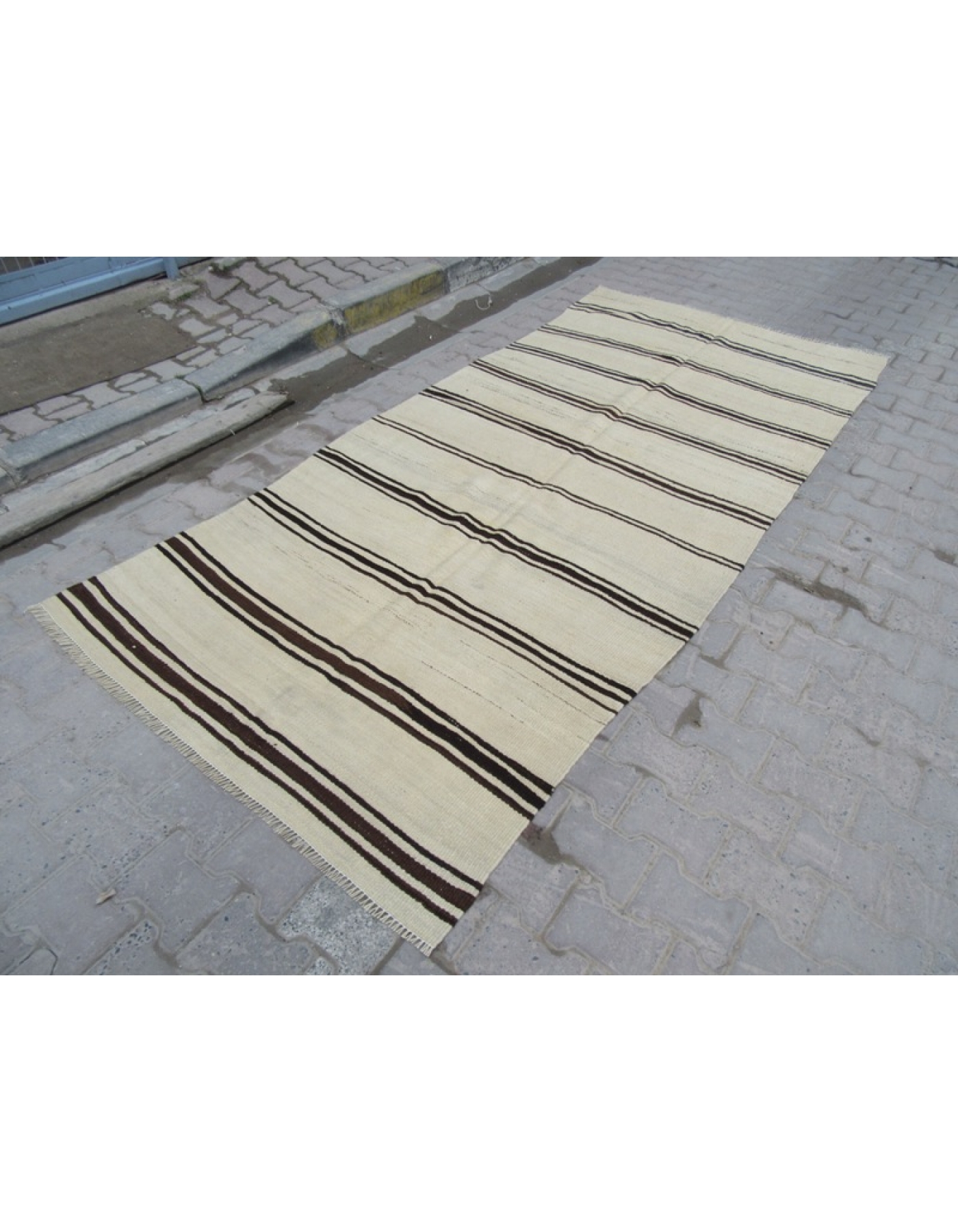 Vintage Natural Striped Turkish Wool Kilim Rug