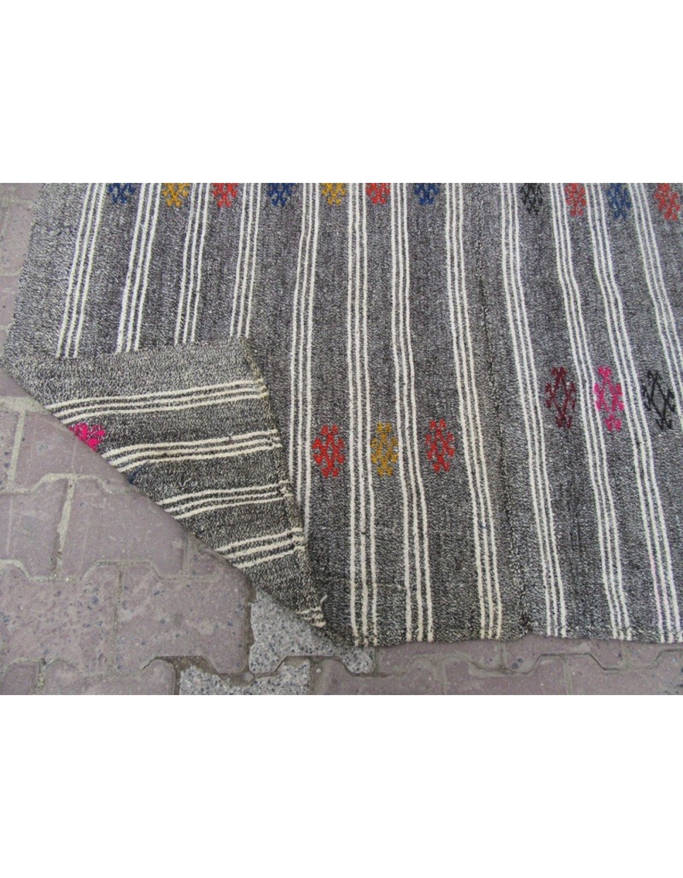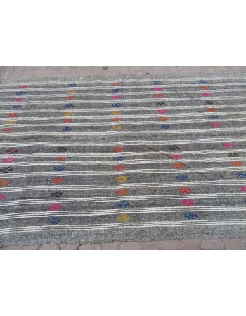 Embroidered Vintage Gray / White Striped Kilim Rug