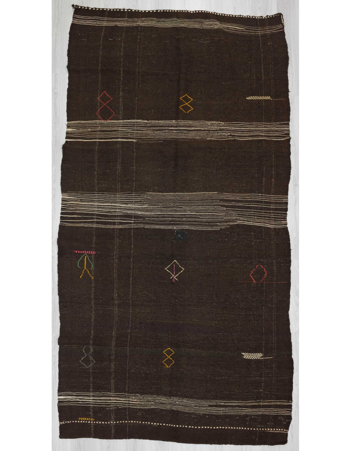 Vintage brown kilim rug from Afyon region of Turkey.This kilim rug is approximately 50-60 years old and in very good condition