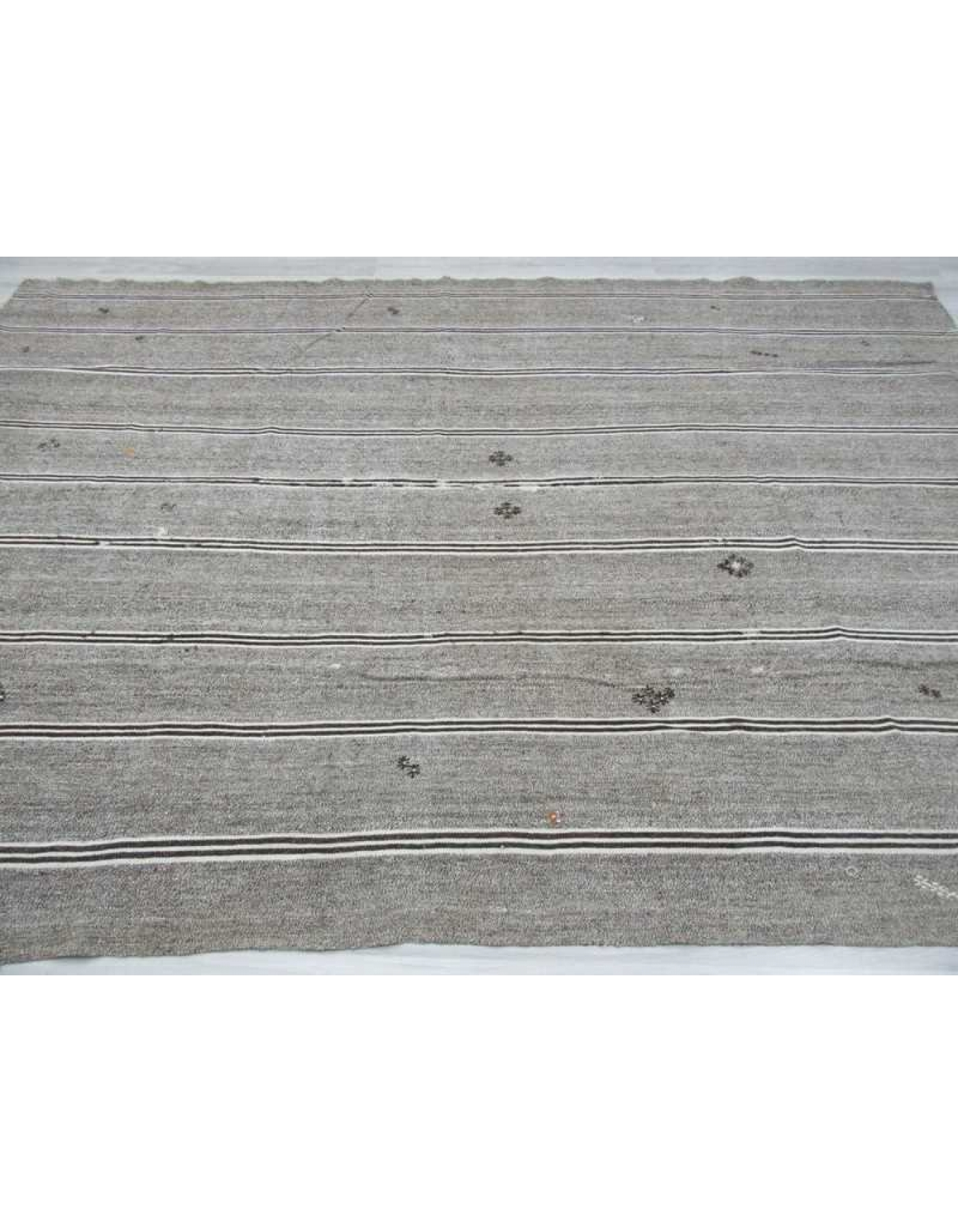 Vintage gray Turkish kilim rug with vertical black and white stripes. This kilim rug handwoven in Adana region of Turkey. Approximatelly 50-60 years old and in very good condition