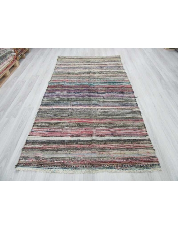 Vintage unique rag rug from Afyon region of Turkey.Approximately 35-45 years old.In very good condition