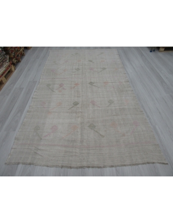 Vintage Embroidered Turkish Hemp Kilim Rug
