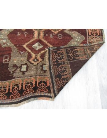 Vintage Brown Turkish Wool Kars Runner Rug
