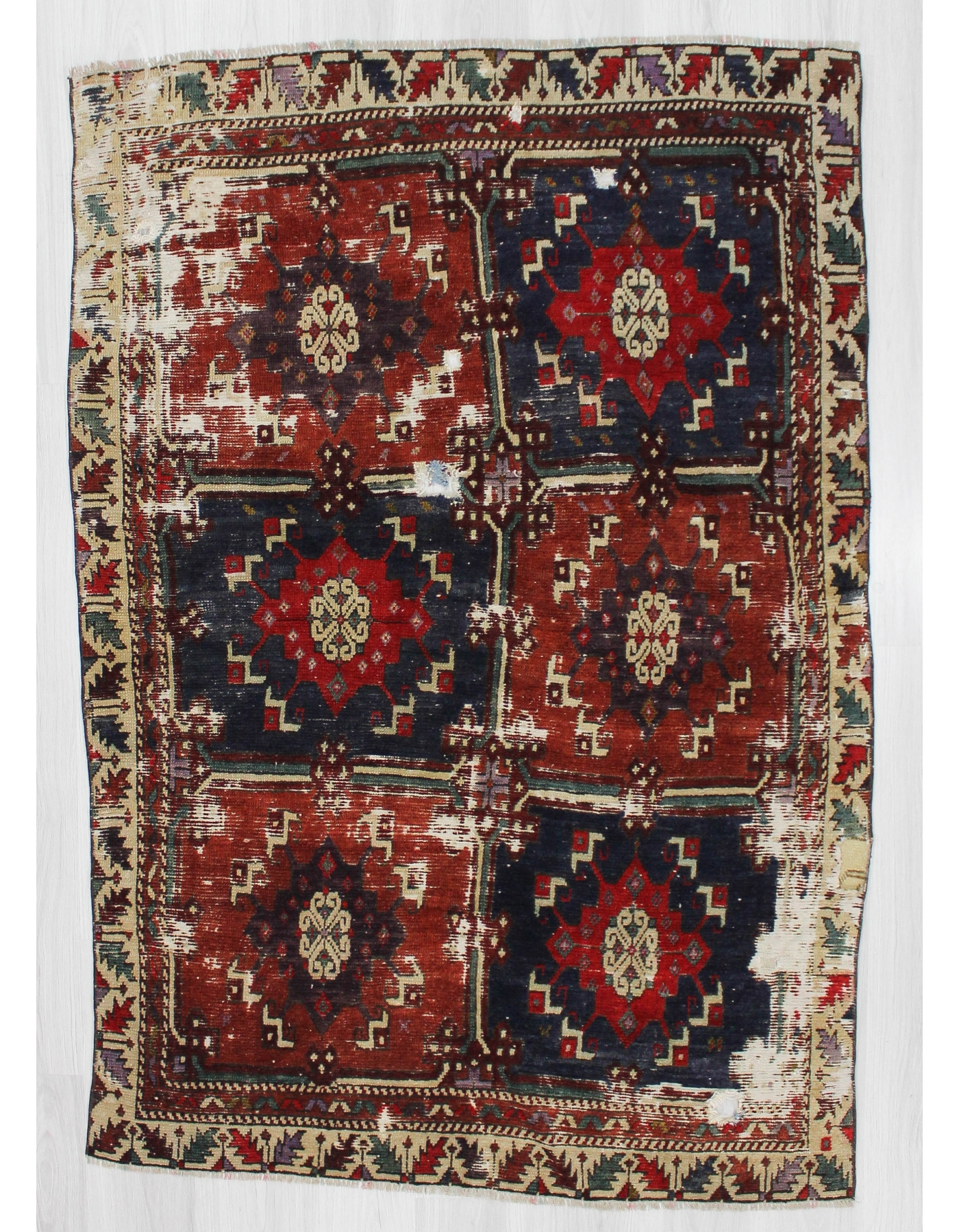 Handknotted antique wool rug from Manisa region of Turkey. Approximately 80-100 years old. In good condition