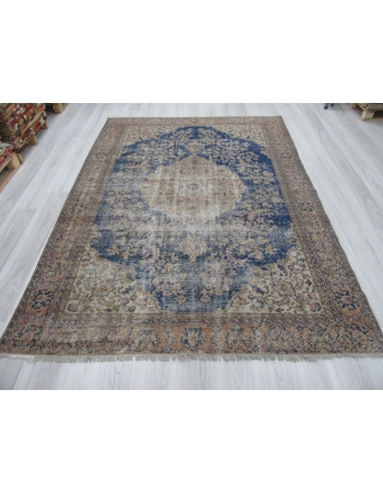 Handknotted vintage distressed rug from Oushak region of Turkey. Approximately 50-60 years old. In very good condition