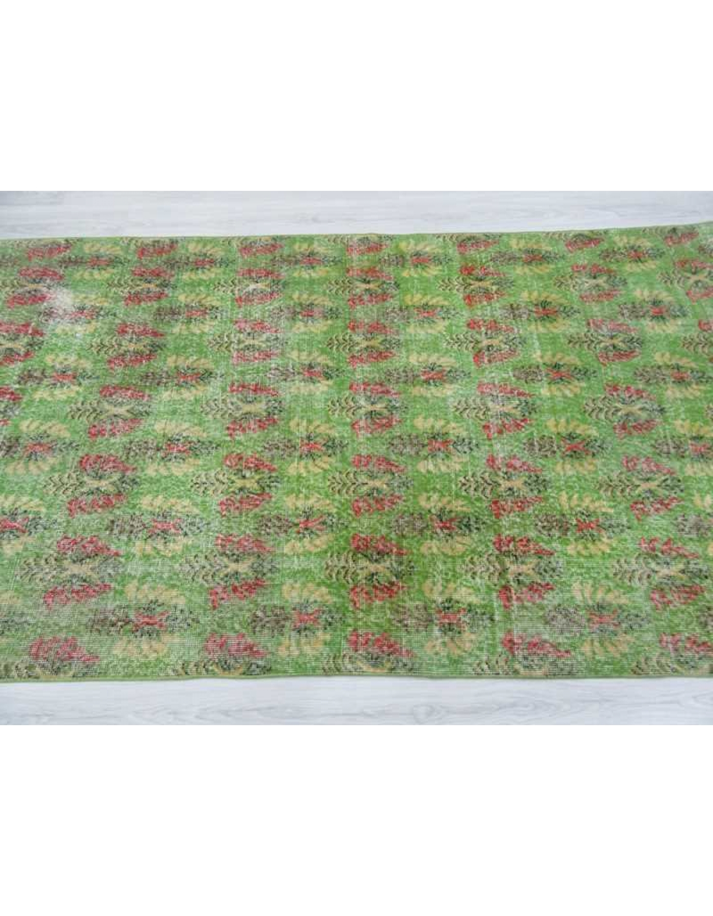 Handknotted vintage green rug from Isparta region of Turkey.Approximatelly 50-60 years old.In very good condition